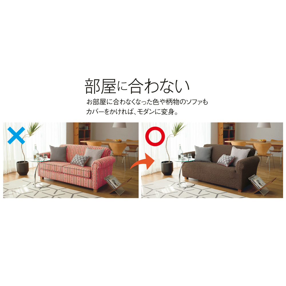 長年愛用してきた大切なソファが痛んできた・・そんなときにこのフィットカバーを掛けるだけで大切なお手持ちのソファがまるで新品のように生まれ変わります。ソファにカバーをかけて余った布を隙間に押し込むだけで装着完了!