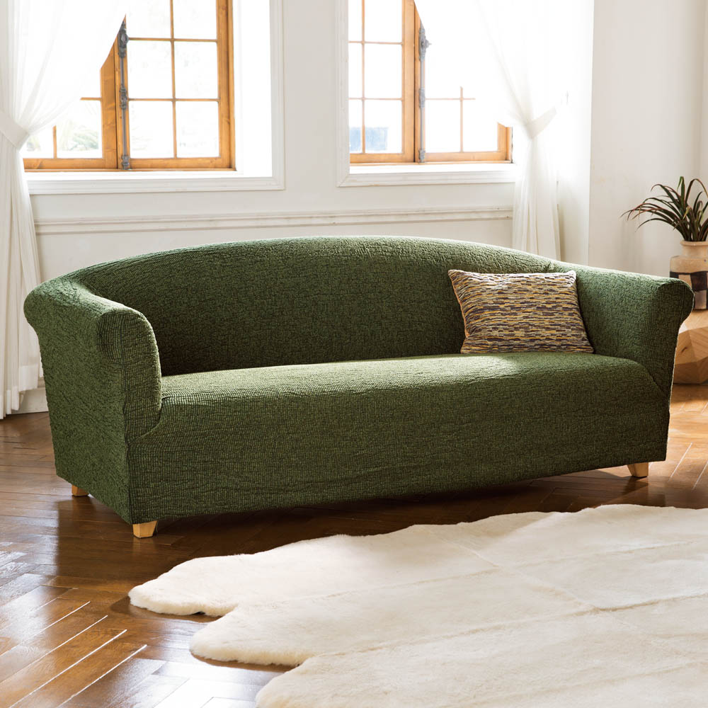 お使いのソファにかぶせ、すき間に布を押し込めば出来上がり!簡単らくらく取り付けで、ソファの張地のようにぴたっとキレイにフィットし仕上がりもきれい。豊富なサイズ展開も自慢です。素肌にうれしい綿混素材