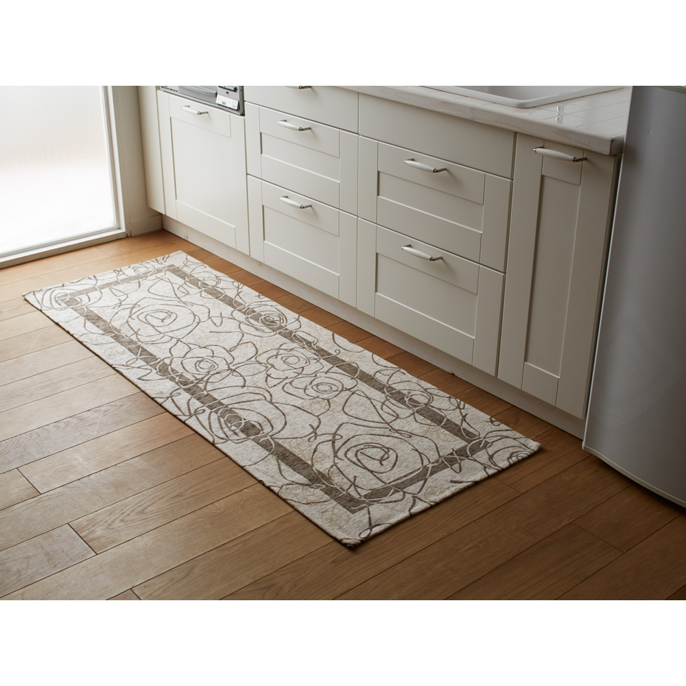 ゴブラン織りは織物のため比較的薄手で、段差ができにくく、ドアの開閉にも邪魔になりにくいので、いろいろなお部屋に使えます。商品画像の説明