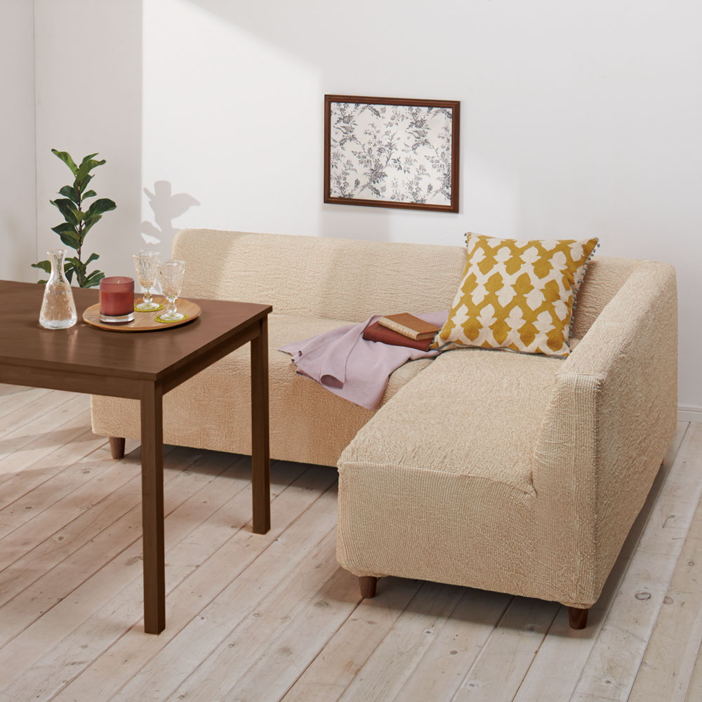 お部屋の中でも面積の大きいソファ。だからこそフィットカバーを替えるだけで、印象が変わり、手軽にプチリフォーム気分が味わえます。
