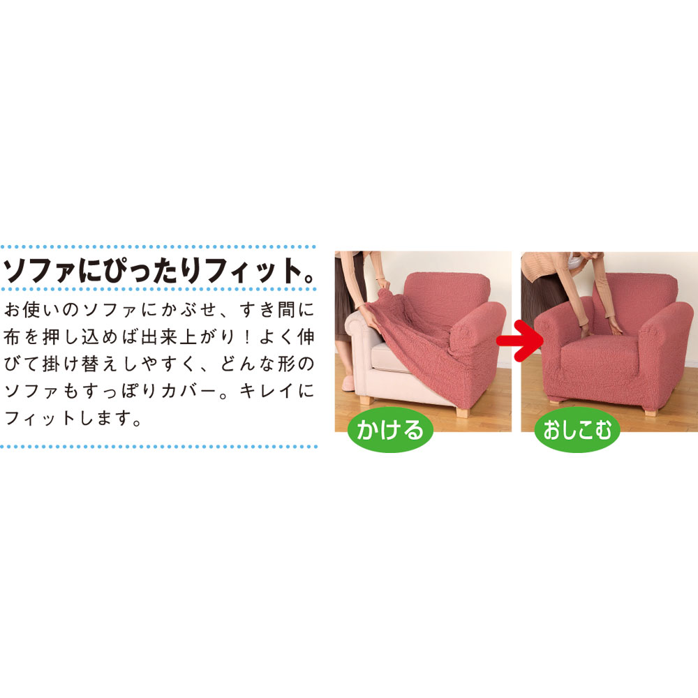 お使いのソファにかぶせ、すき間に布を押し込めば出来上がり!簡単らくらく取り付けで、ソファの張地のようにぴたっとキレイにフィットし仕上がりもきれい。豊富なサイズ展開も自慢です。
