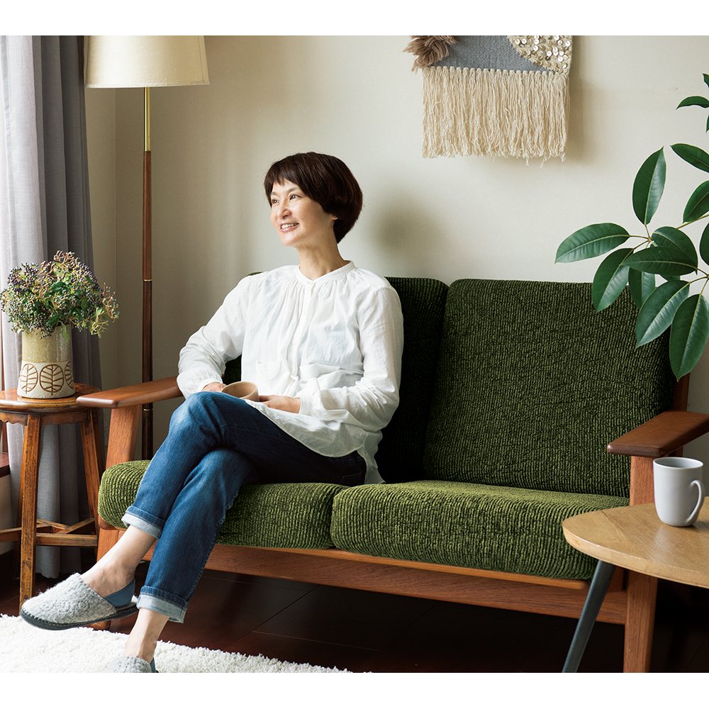 「大人なカラーが我が家にぴったり!張り地みたいで高級感が出ますね。」 植栽&フラワーデザイナー 山口吾子さん