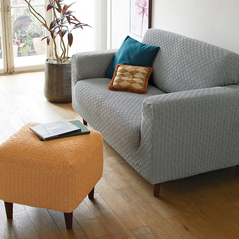 お部屋の中でも面積の大きいソファ。だからこそフィットカバーを替えるだけで、印象が変わり、手軽にプチリフォーム気分が味わえます。