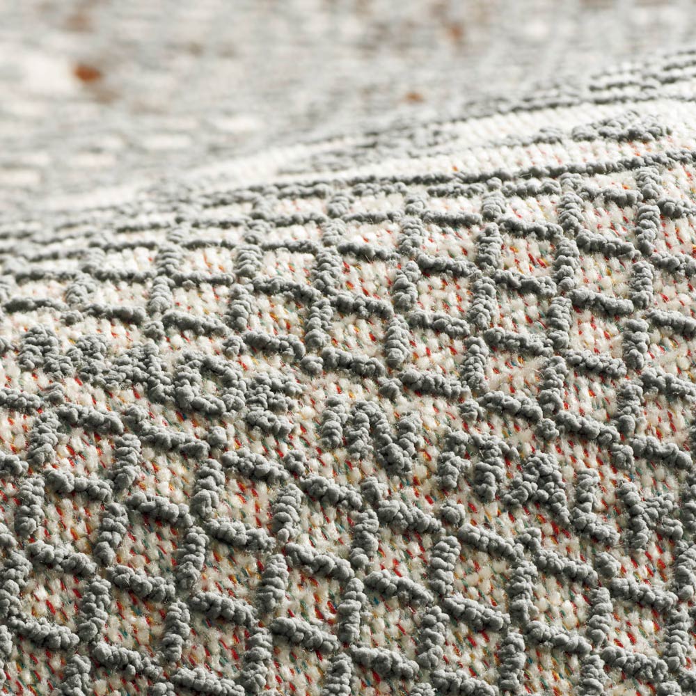 イタリアンモダンな幾何学柄で、光沢のあるシェニール糸をふんだんに使用したマルチカバーです。適度なボリューム感を出しました。