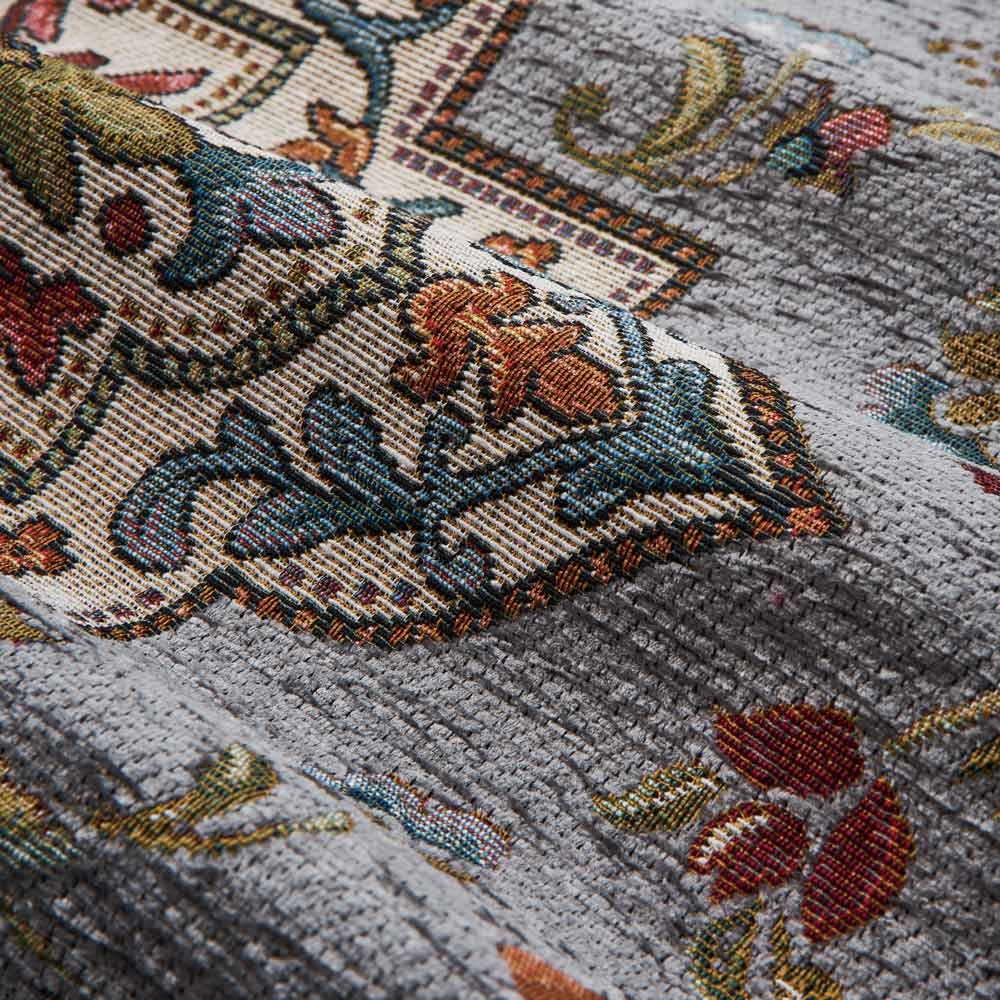 光沢感のある柔らかな手触りと、細密な多色表現されたクラシック柄はイタリアンデザイン。散りばめられた花々が色鮮やかに美しい、上品な雰囲気です。モールのようなシェニール糸は柔らかな風合いで、適度なボリューム感がありながら、厚さ約3mmと薄手なので、ご自宅でのお洗濯も簡単。引き出しの開閉にも引っかかりにくく邪魔になりません。人気のグレージュと青みがかったモスグレー、鮮やかなターコイズの3色を揃えました。