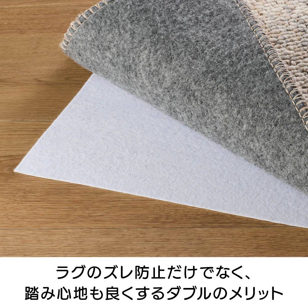表面はソフトなフェルト状生地、裏面は滑り止め効果を発揮する特殊コーティング加工。ほどよいクッション性があるのでラグの下に敷けば踏み心地が柔らかくなり、防音効果も期待できます。