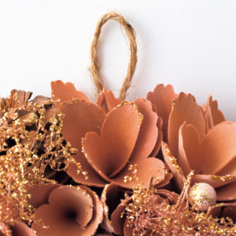 リース上部にはハンギングに便利な麻紐付き。