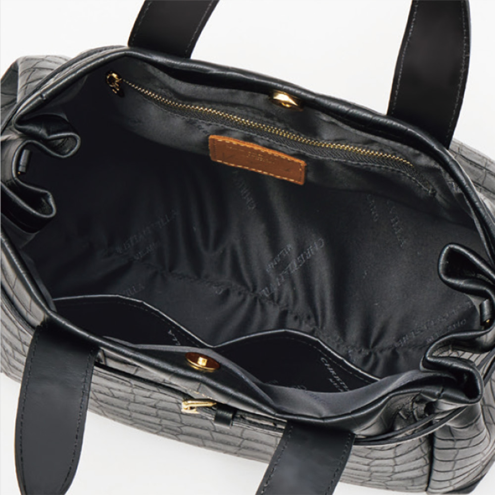 ■素材:本体…牛革(クロコ型押し加工)、内側…ナイロン、持ち手・ショルダー…牛革