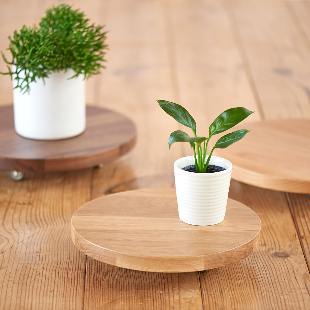 天然木無垢材を贅沢に使用し、経年変化を楽しめるシンプルな仕上げに。重い鉢植えもサッと移動できます。