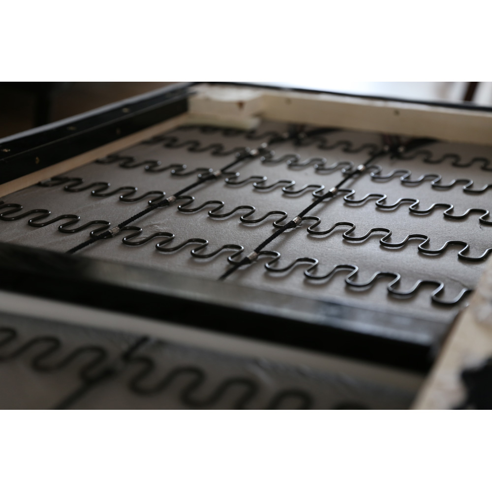 S字バネとウレタンの組み合わせが重さを自然に受け、ただ柔らかいだけではない、しっかりとした座り心地が特徴です。