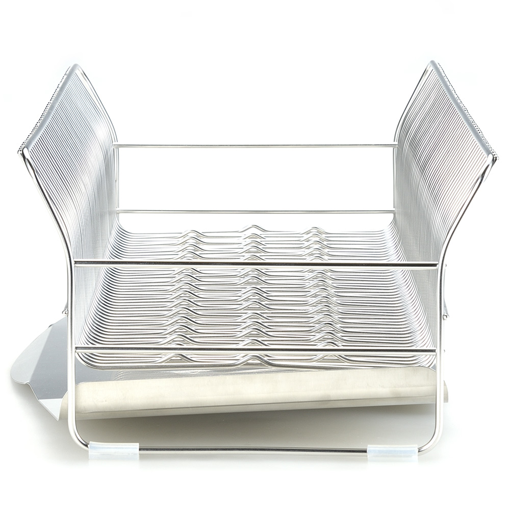 職人が手作業で仕上げた凹凸やカーブの形状が特徴的で、美しいデザイン。ワイヤーの先端は、1本1本職人が手作業で溶かして丸めており、滑らかな仕上がり。布巾の引っ掛かりや指先などに気を配っています。オールステンレスのデザインは見た目が美しく、キッチンに置いてもインテリアの一部としても映えます。