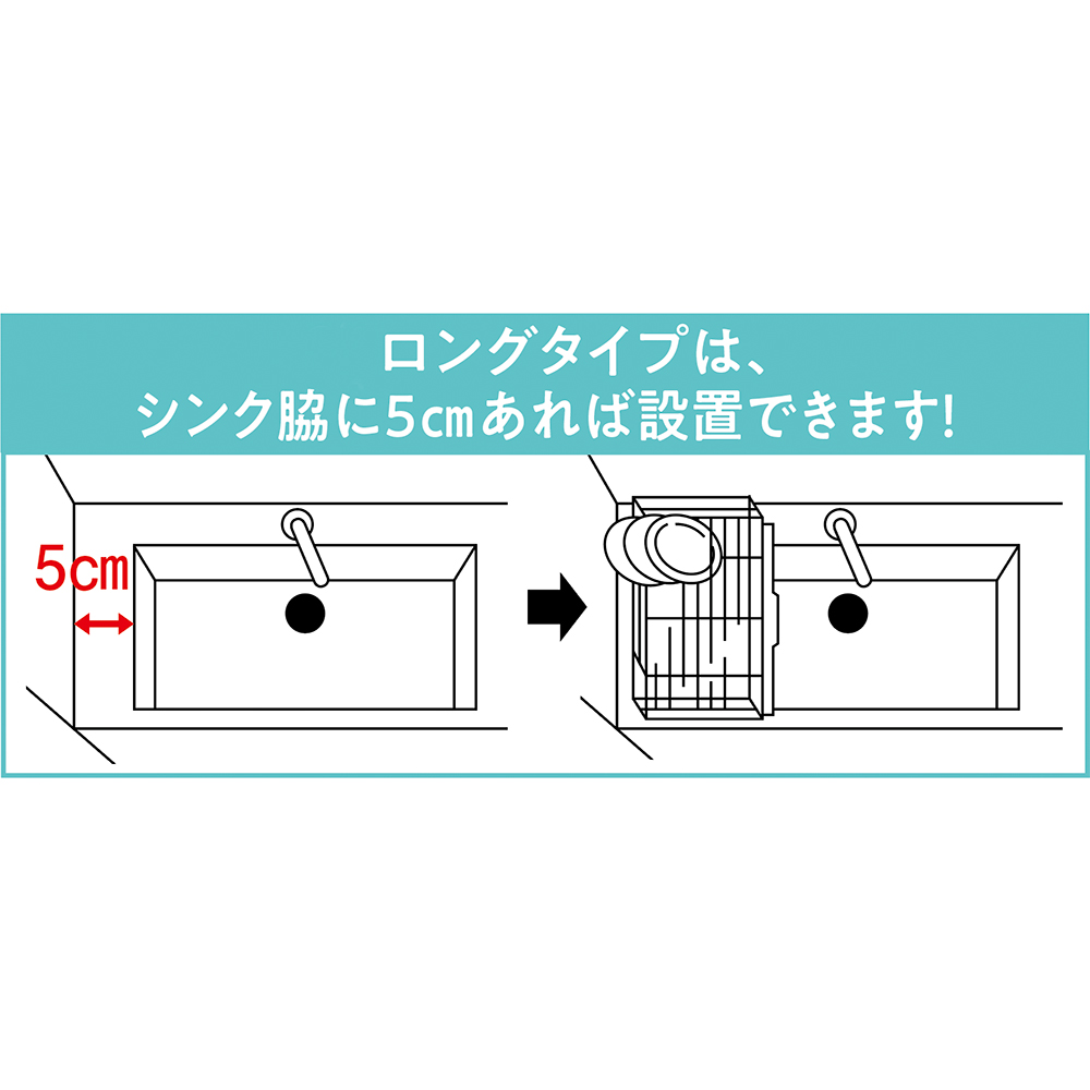 「ロングワイド」、「ロング」タイプはシンク脇に5cmあれば設置できます