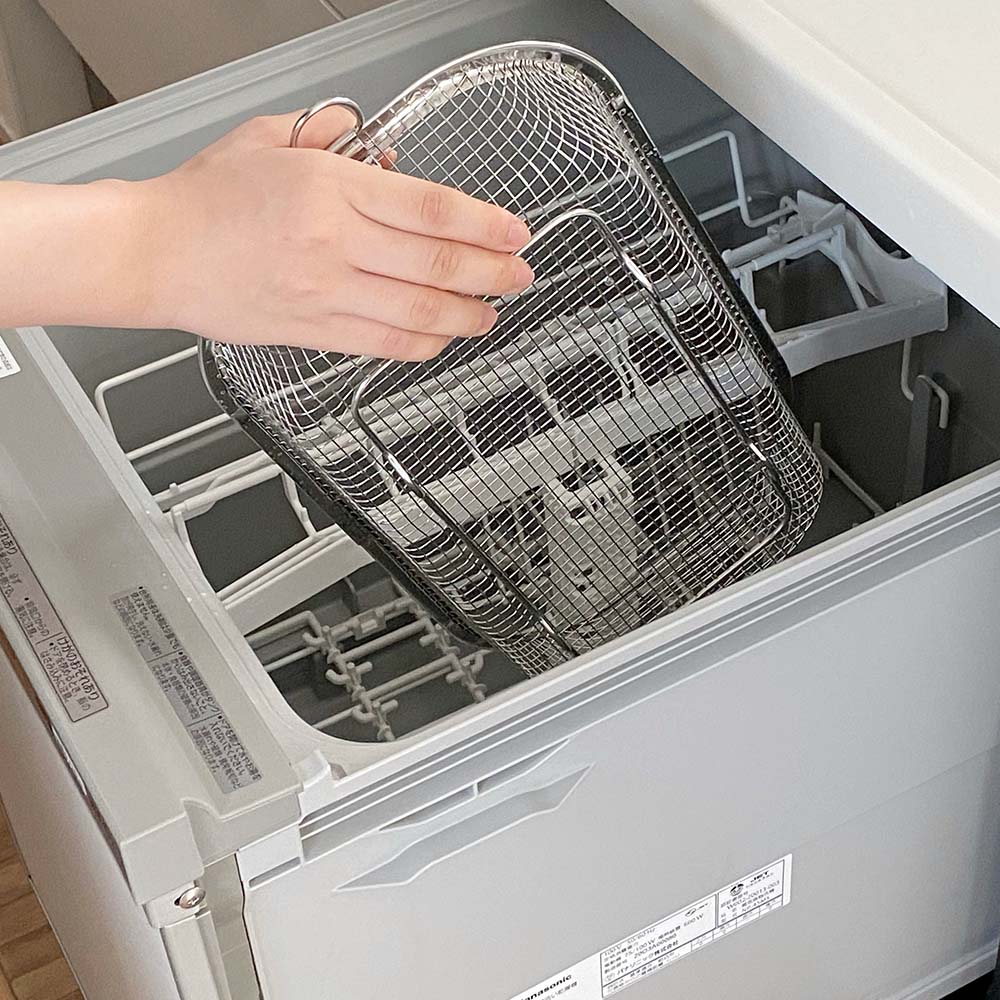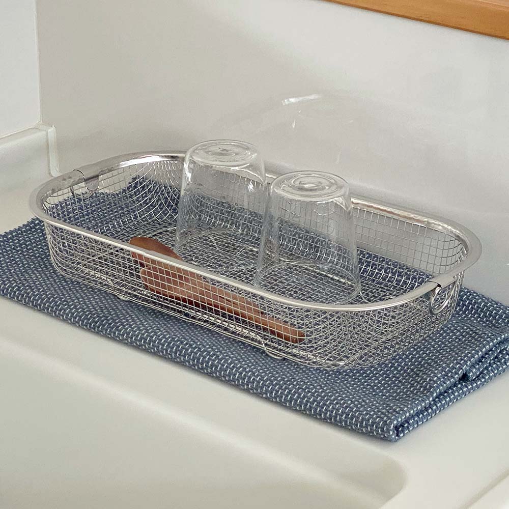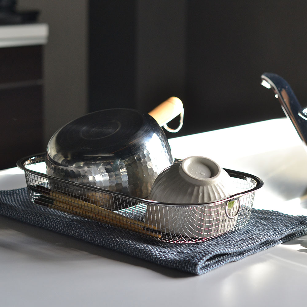 サビに強い18-8ステンレスを使用しているので、水回りでも安心。丈夫で長持ち、食器と同じように食洗機で丸洗いも可能です。すっきり水が切れます。