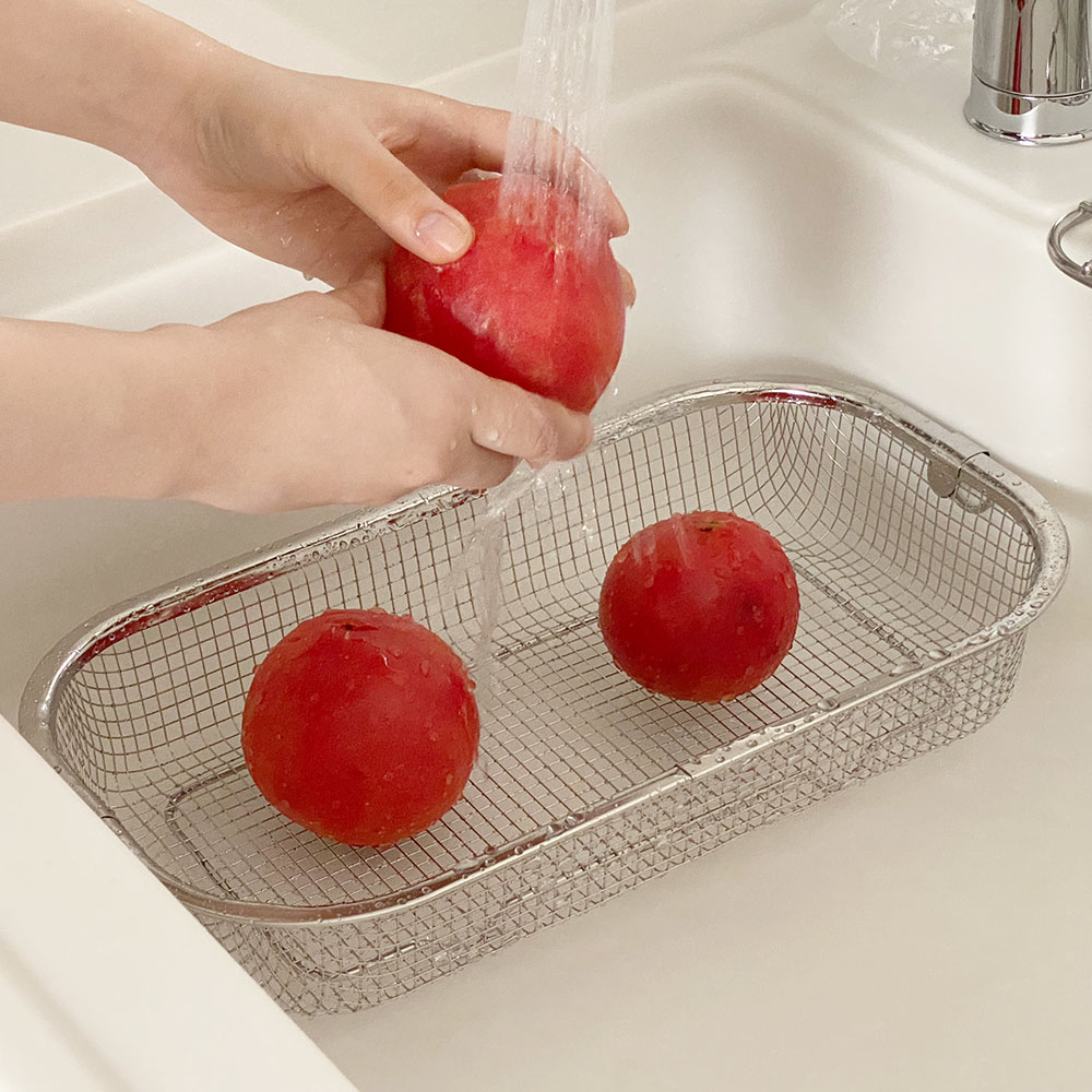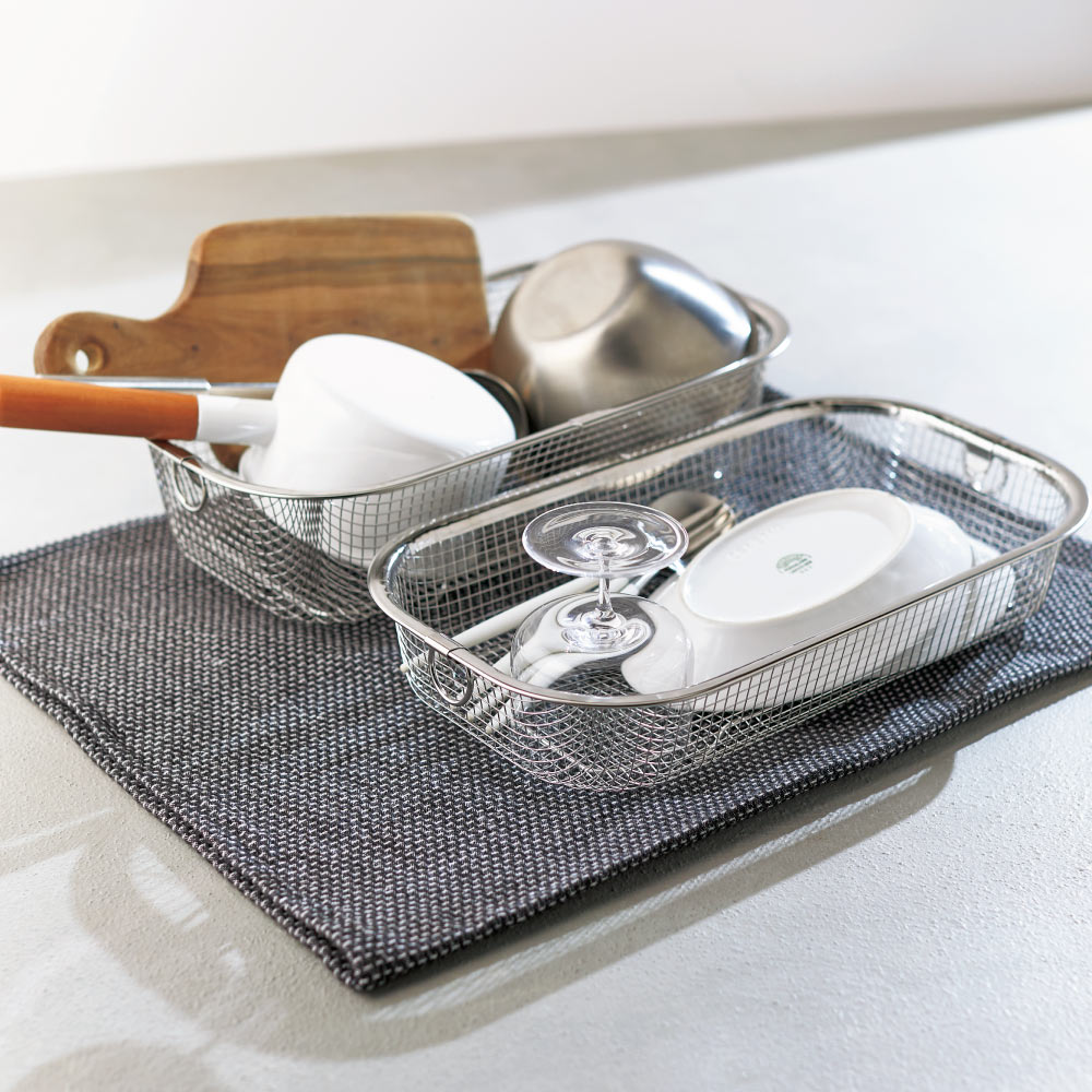 「もう大きな水切りカゴは不要」と感じている方へ。忙しい日々にも対応できる、コンパクトで使いやすい水切りカゴは、洗い物が少ない日や食洗機を利用する時にぴったりです。使わない時は収納できるため、キッチンが広々と使えます。衛生的で耐久性も高い|素材は18-8ステンレス