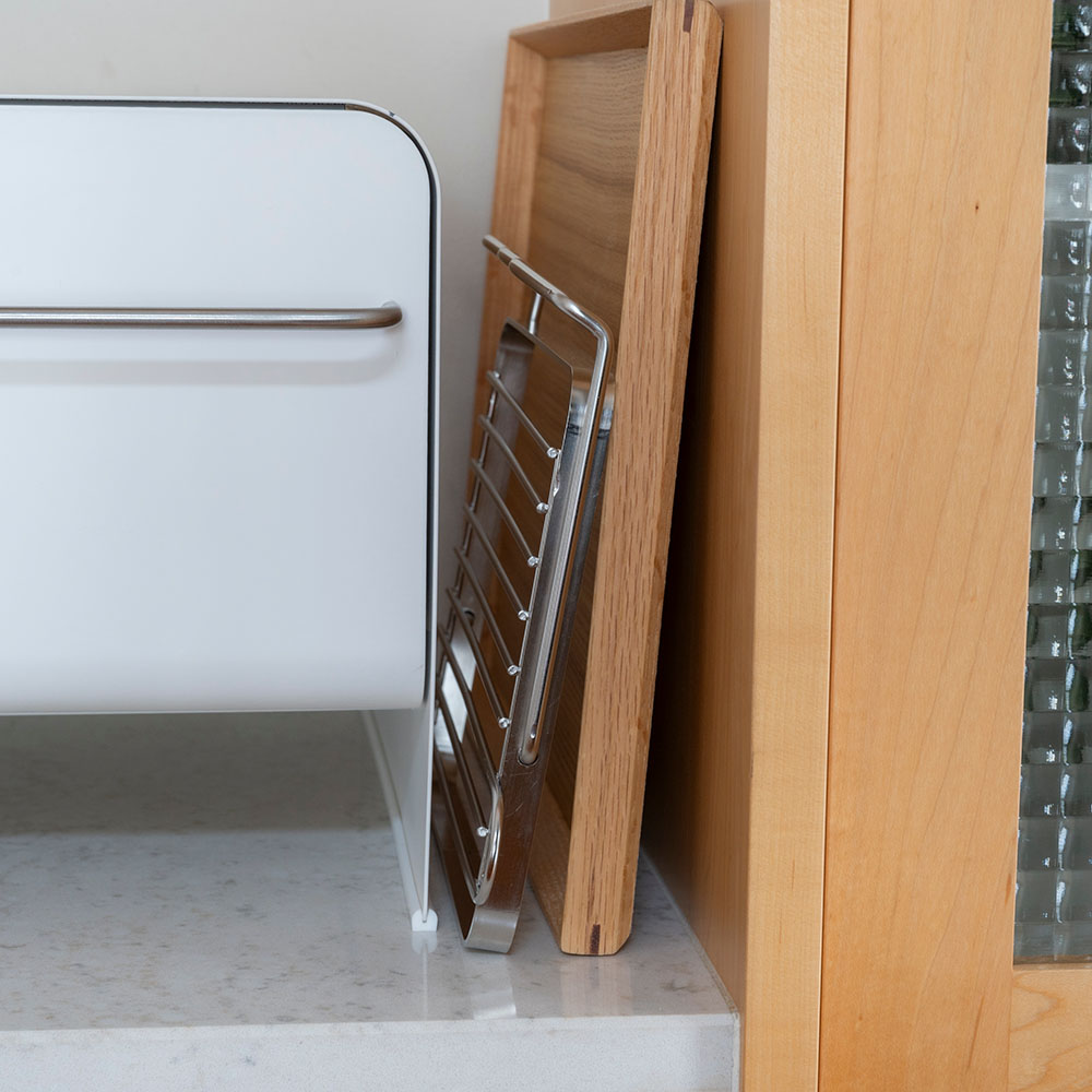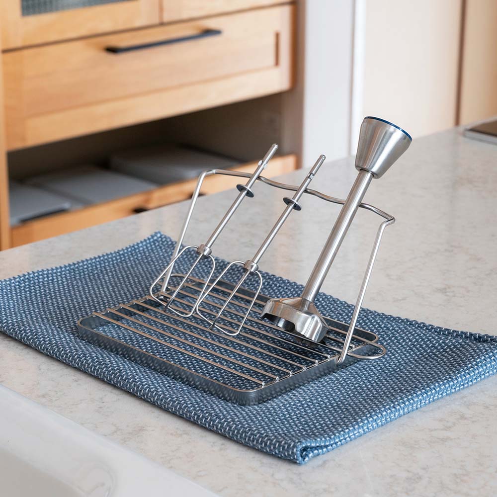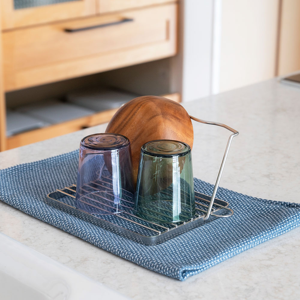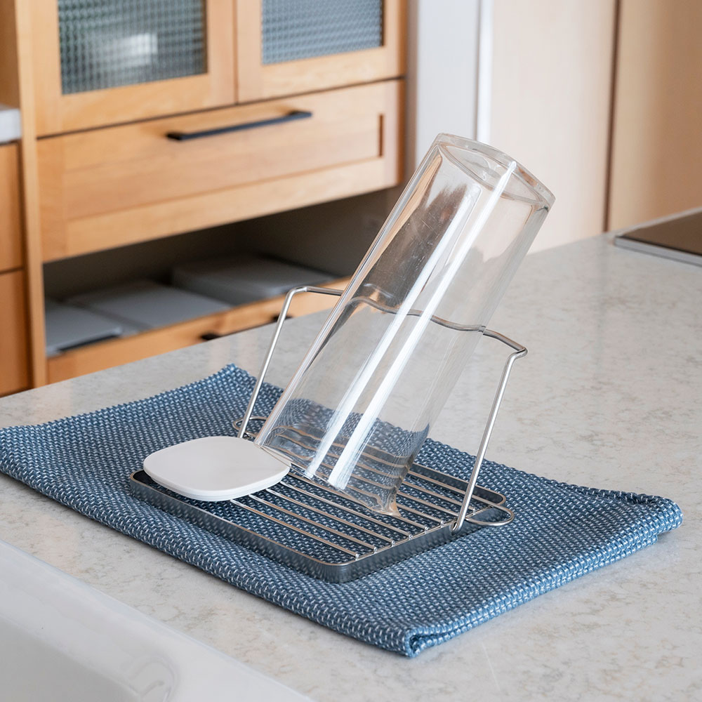 必要な時だけサッと取り出して使えます。置き場所に困る水筒などの水切りに。乾きにくい水筒を斜めに立てて乾かせます。使用しない時は畳めて収納、キッチン周りがスッキリします。