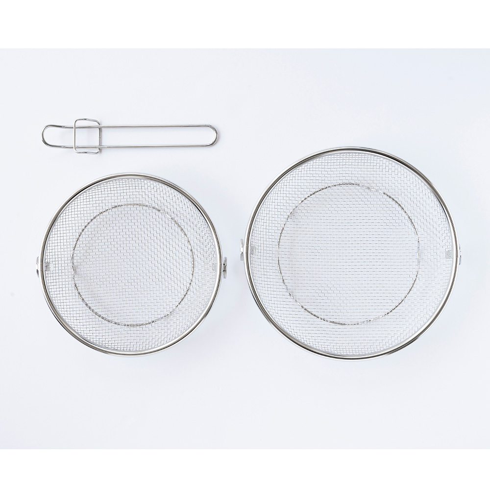 特別な蒸し器を用意する必要はありません。お手持ちのフライパンにセットするだけで、本格的な蒸し料理が手軽に楽しめます。「19cm」の盆ざるは24cm以上のフライパンに、「22cm」の盆ざるは26cm以上のフライパンに対応。平らな形状で食材が重なりにくく、均一に熱が伝わるため、ヘルシーで美味しいうえに、省スペースで収納も場所を取りません。熱々も安心。燕三条の知恵が生んだ「持ち上げフック」