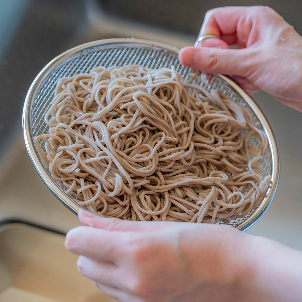お皿に盛ってそのまま食卓に。お蕎麦の水気が切れていい感じです。