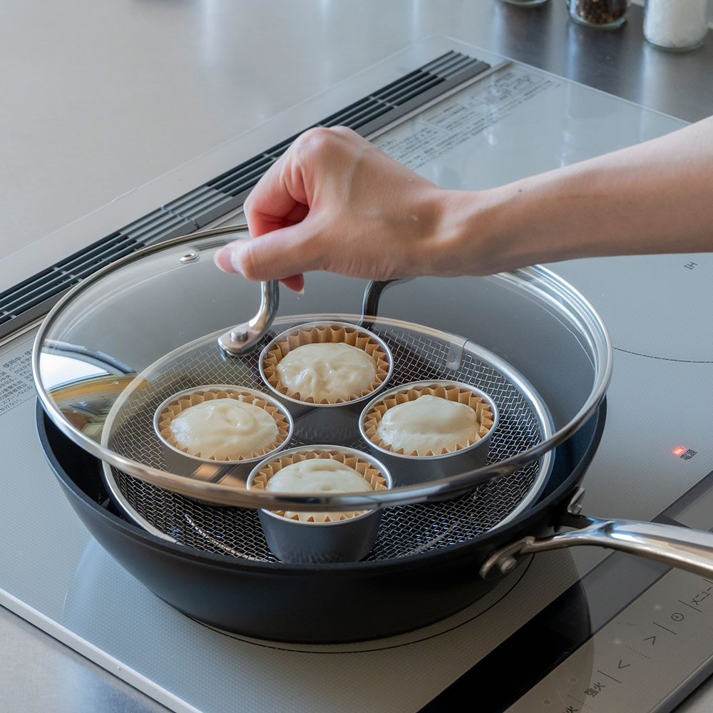 蒸し上がった熱々のざるを取り出すのは、これまで一苦労ではありませんでしたか?「持ち上げフック」があれば、トングや菜箸で不安定に掴む必要なく、安全かつスムーズにざるを取り出せます。このフックは着脱式のため、調理中にフライパンの蓋を閉める際にも邪魔になりません。繊細な作業をサポートし、やけどの心配を軽減する、使う人のことを考えた設計です。使いやすさを追求した、こだわりのデザインと素材