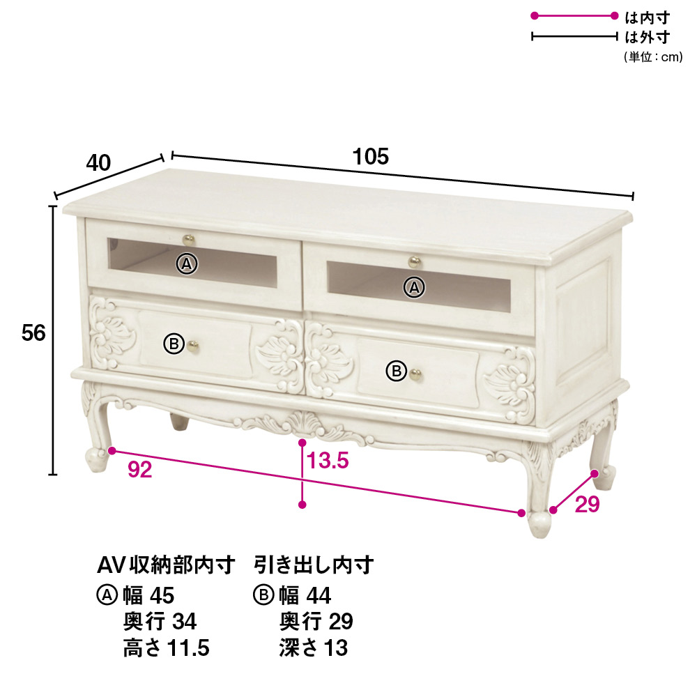 アンティーククラシックシリーズ TV台 幅105cm 奥行40cm 高さ56cm ミドルタイプテレビ台 テレビ台 テレビボード 643620