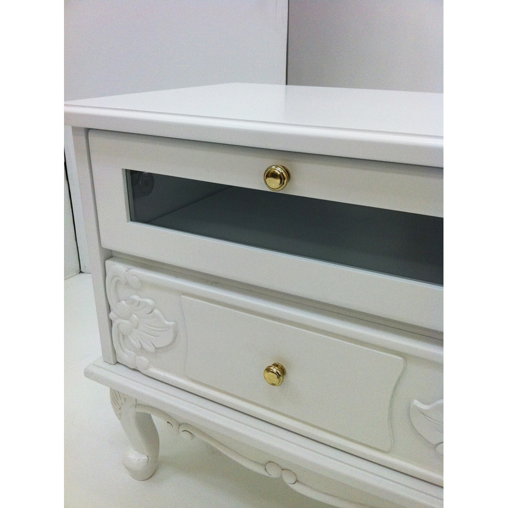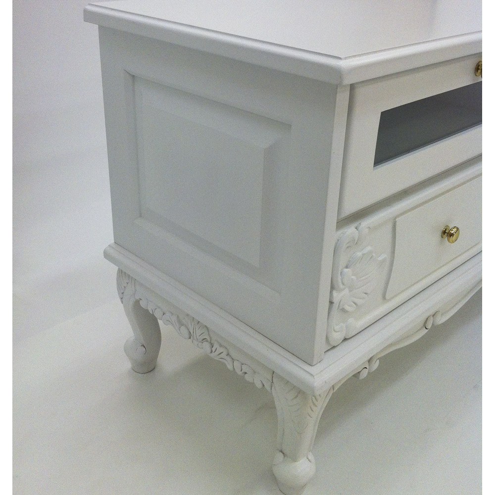猫脚の丸みや、美しいモチーフの装飾が女性らしい印象の白家具シリーズです。華やかなデザインで、まるで海外のホテルのような憧れ空間を叶えられます。