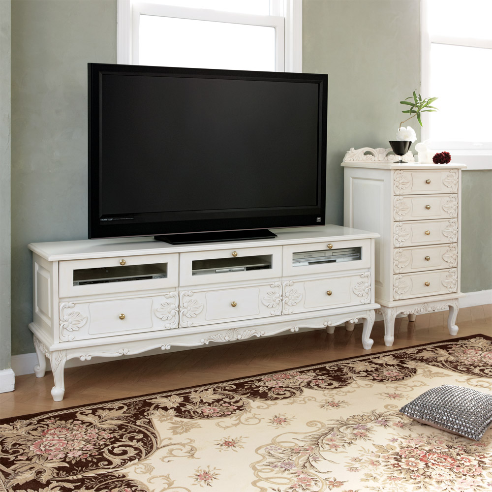 • フラワーモチーフとくるんとした猫脚がクラシカルな空間を演出します。 ※お届けはテレビ台幅154cmタイプです。