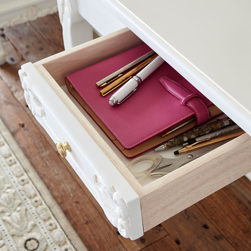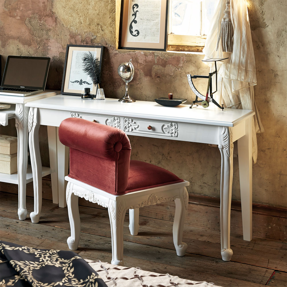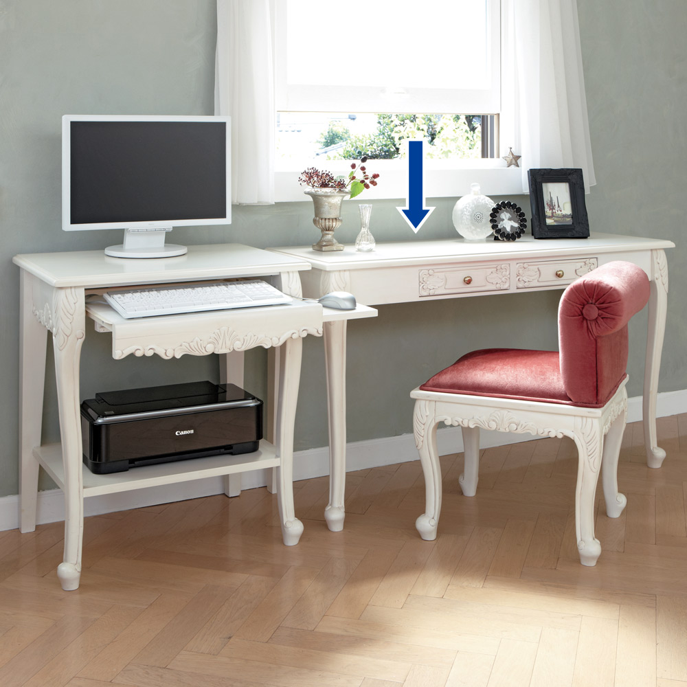 繊細な装飾とアンティーク加工が表情豊かな薄型のデスク。