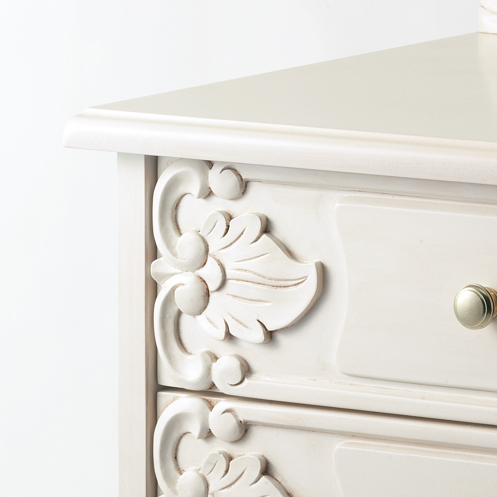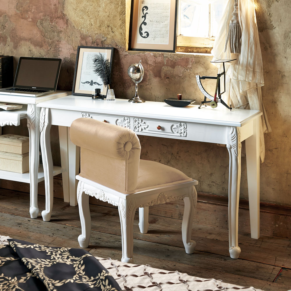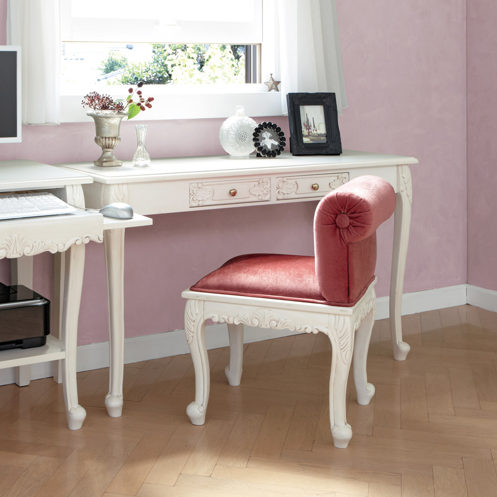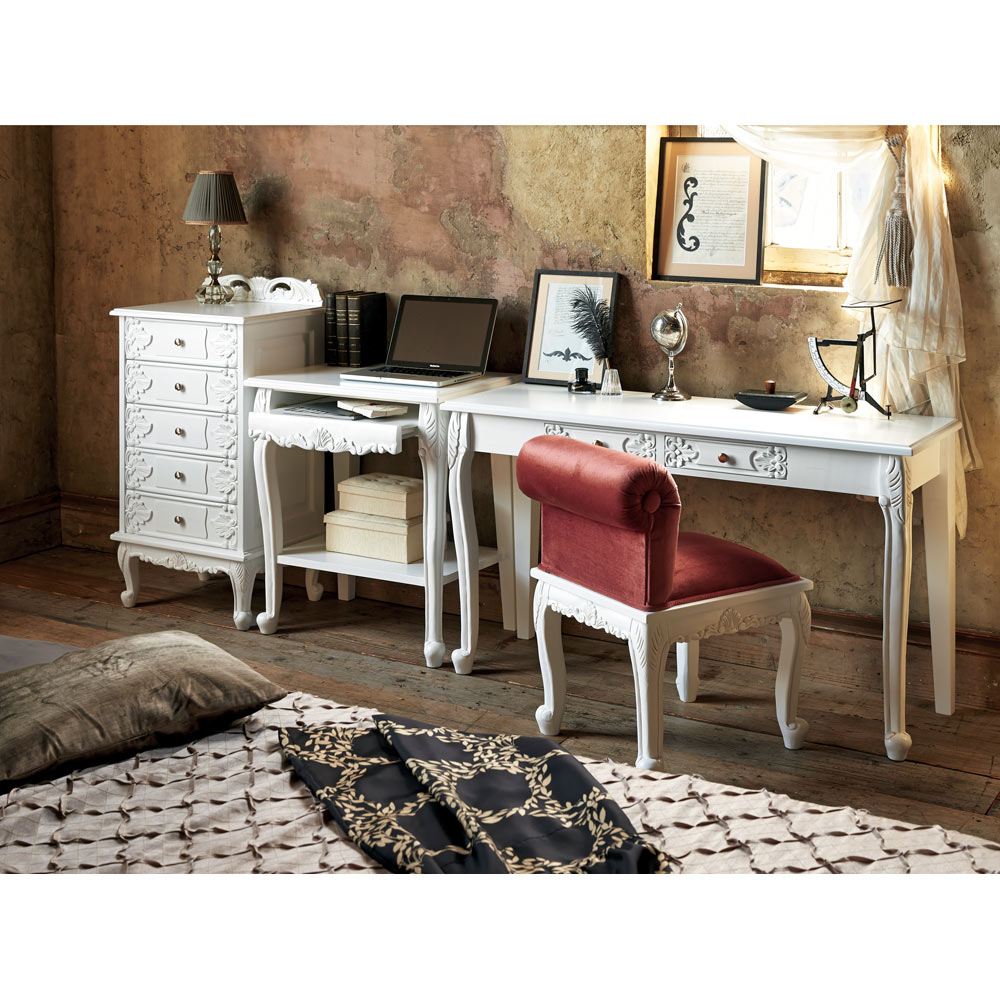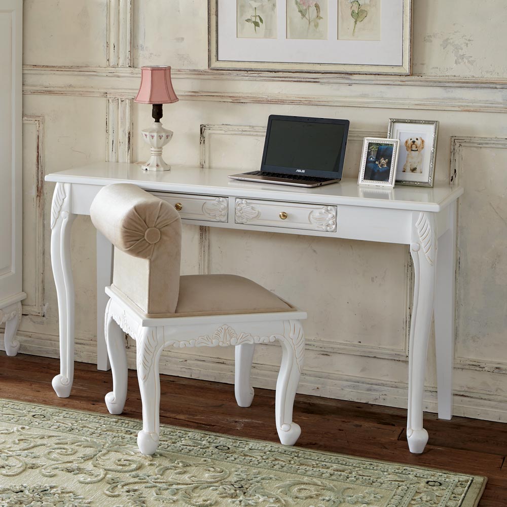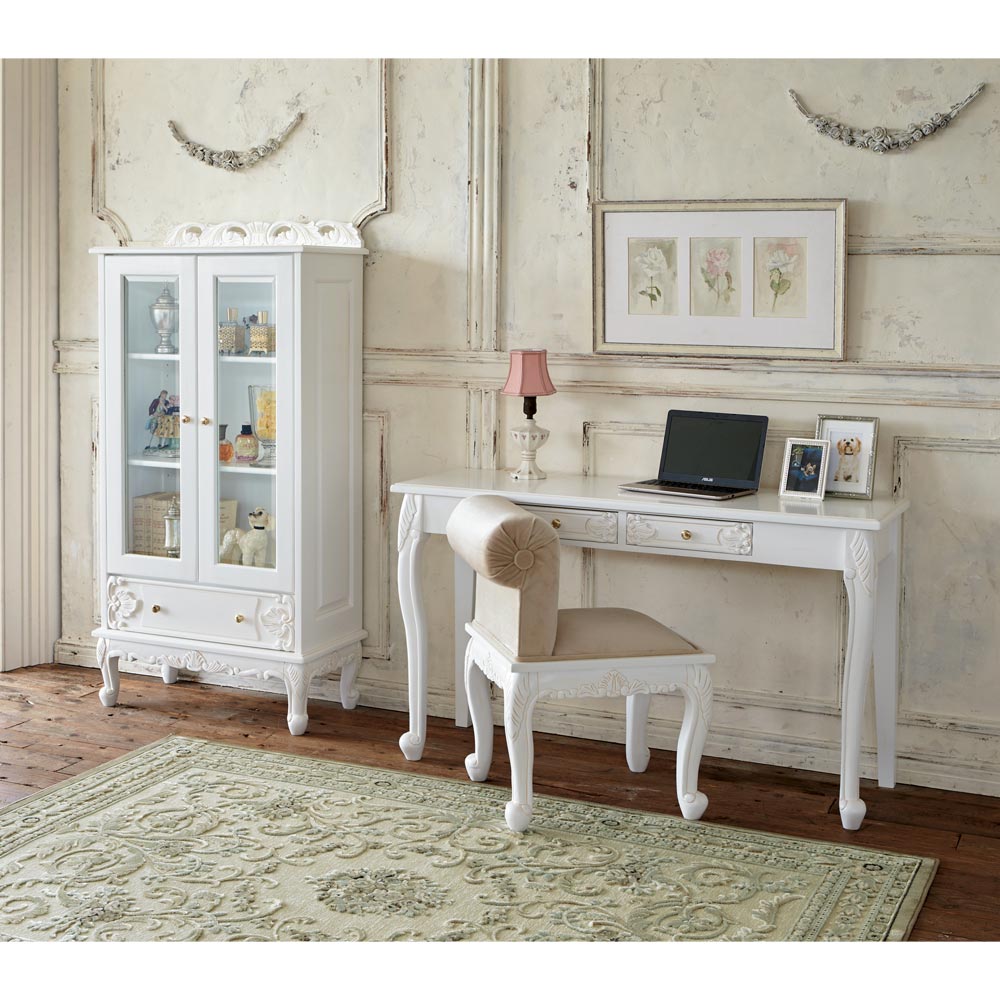 猫脚の丸みや、美しいモチーフの装飾が女性らしい印象の白家具シリーズです。華やかなデザインで、まるで海外のホテルのような憧れ空間を叶えられます。
