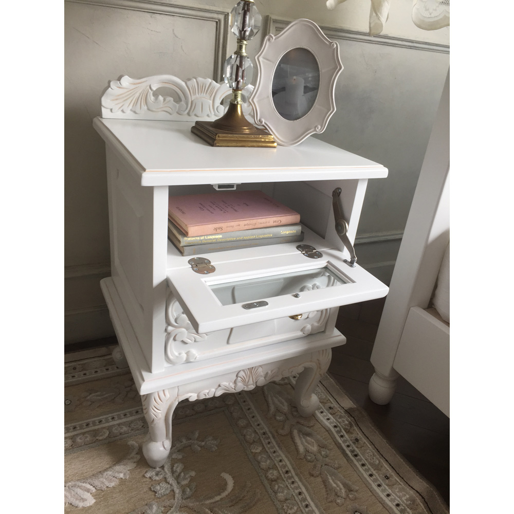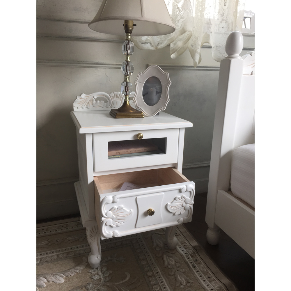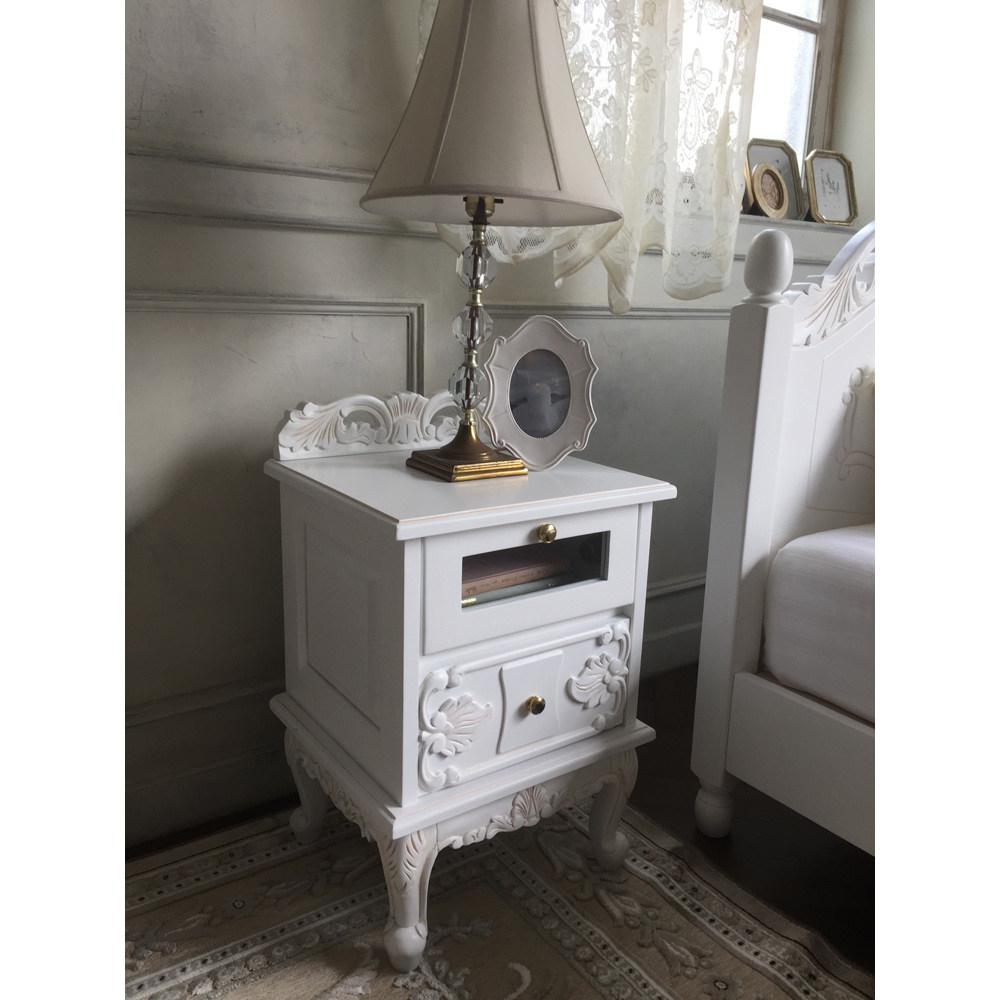 クラシカルな装飾が美しいベッドサイドチェストです。