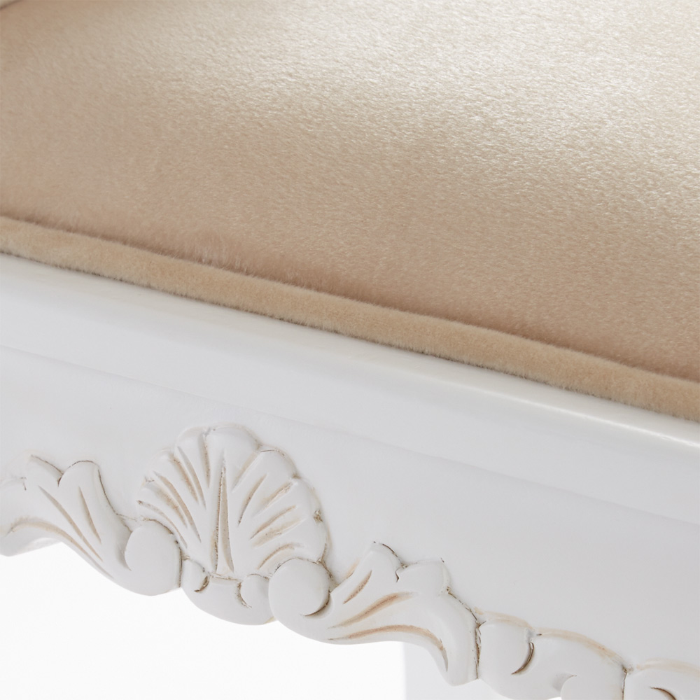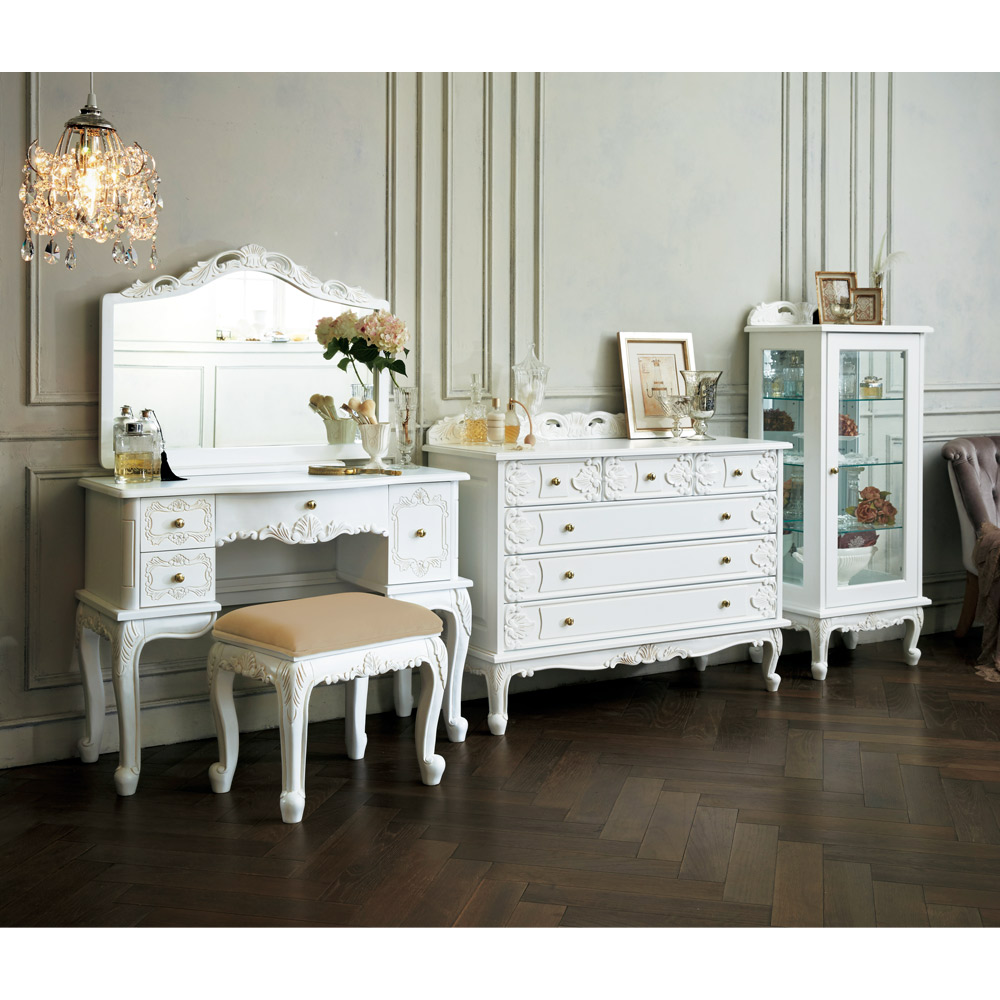 猫脚の丸みや、美しいモチーフの装飾が女性らしい印象の白家具シリーズです。