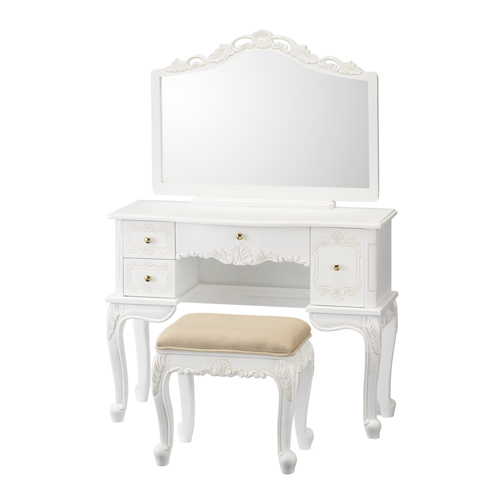 ◆柔和なホワイトの色調のクラシックドレッサーで、お部屋を明るく華やかな印象に模様替えできます。