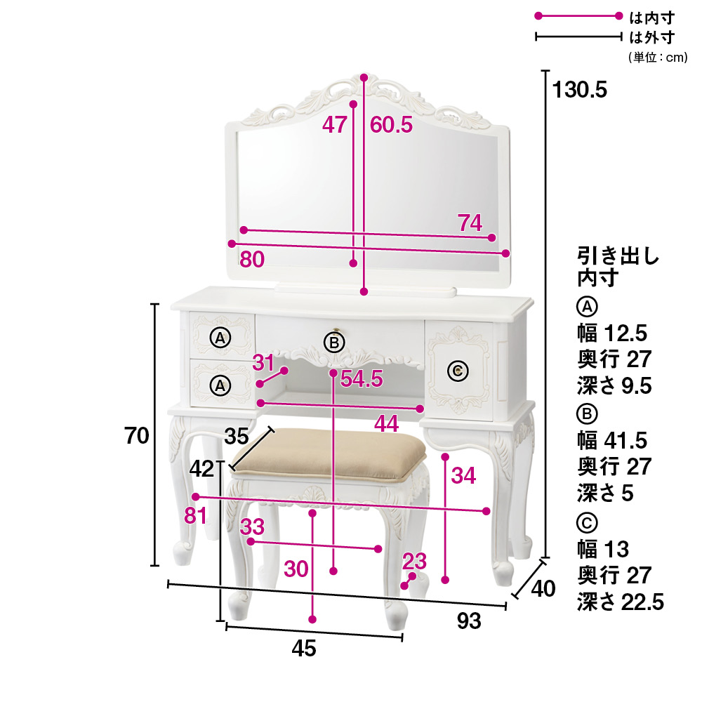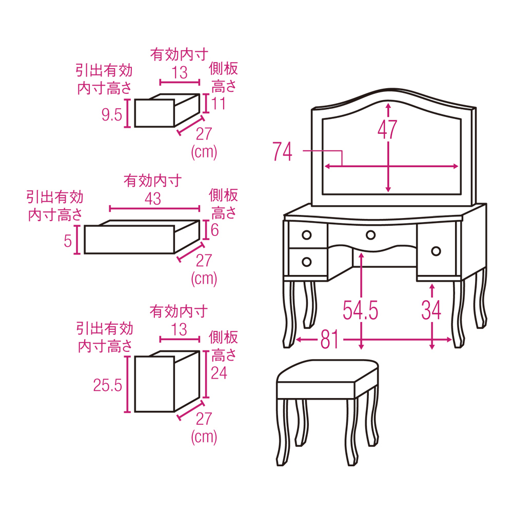 • スツールがセットのお得なドレッサーです。