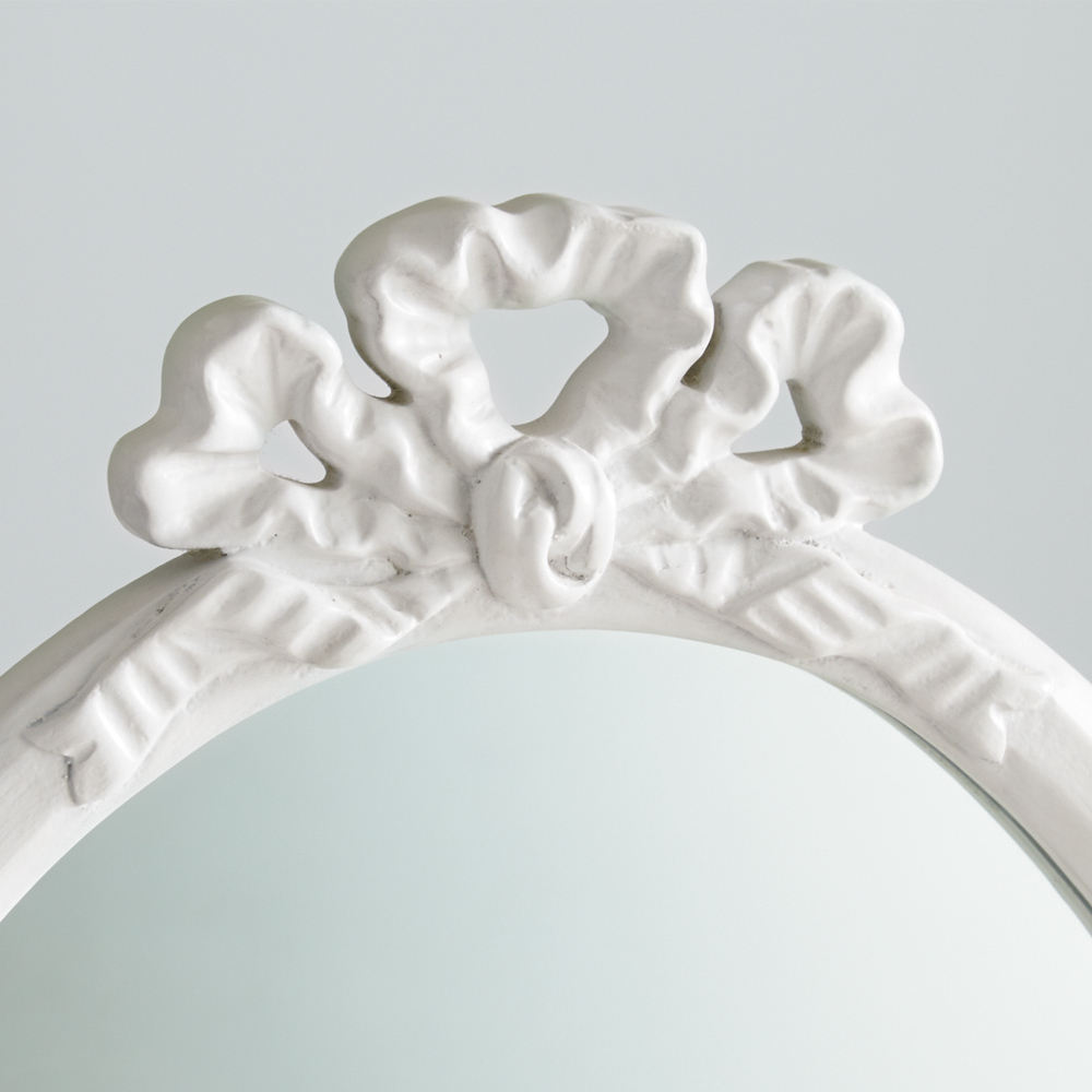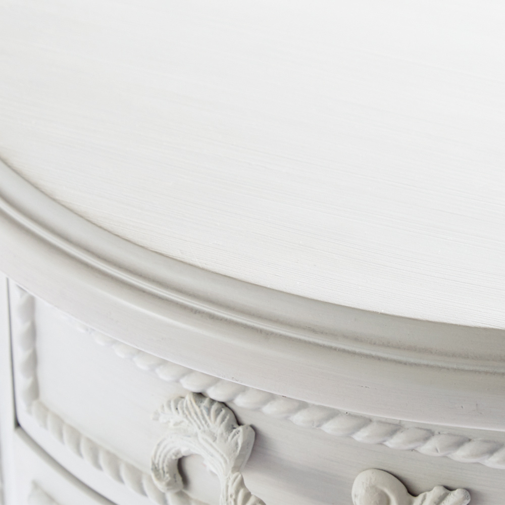 お洒落でクラシックなフォルムとポイント使いの優美なリボンモチーフで、憧れの空間が叶う大人の白家具シリーズです。グレー味のかかった落ち着いた白色なので、お部屋のインテリアになじみながら、上品に存在感を放ちます。