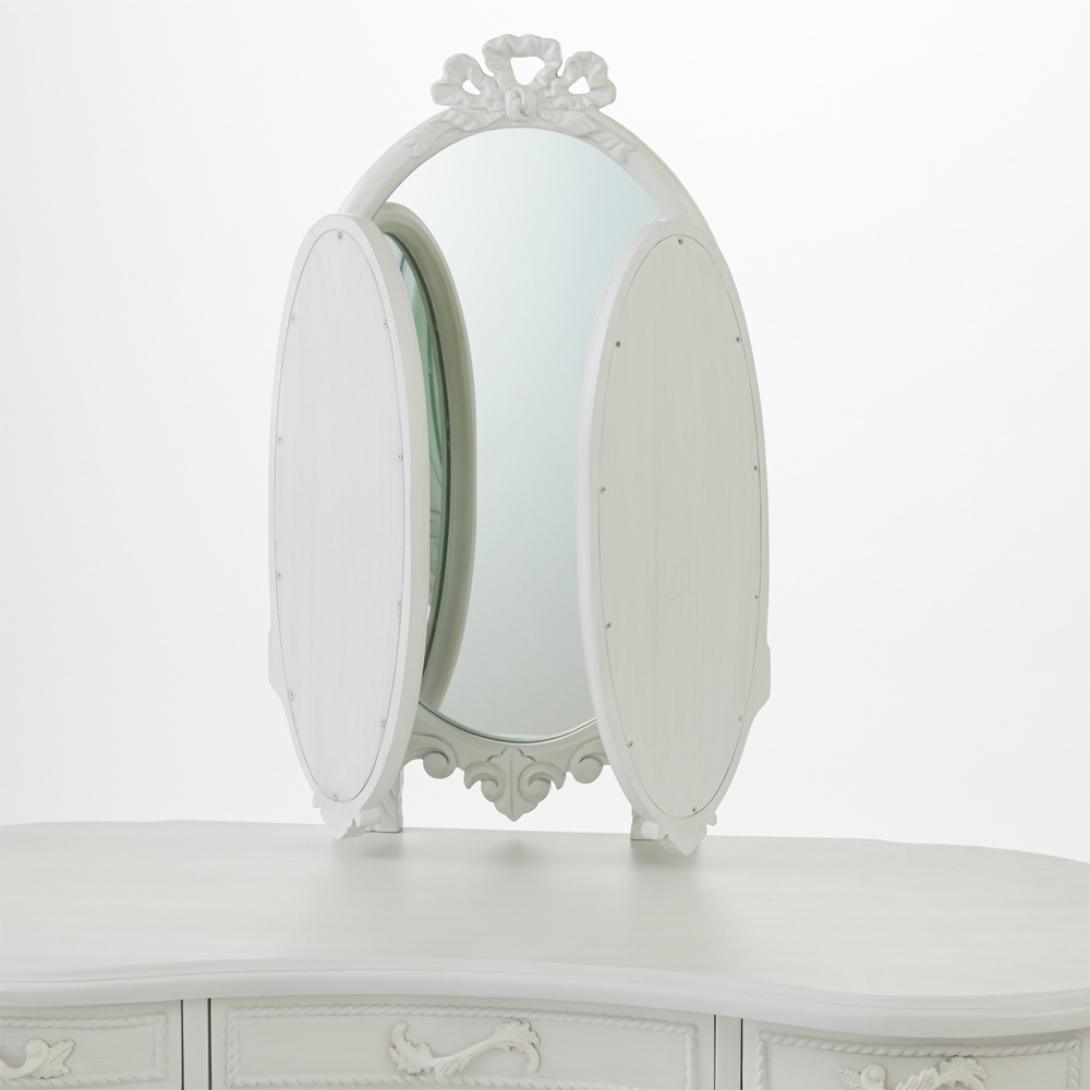 丸みを帯びた三面鏡は、折りたたみ可能です。