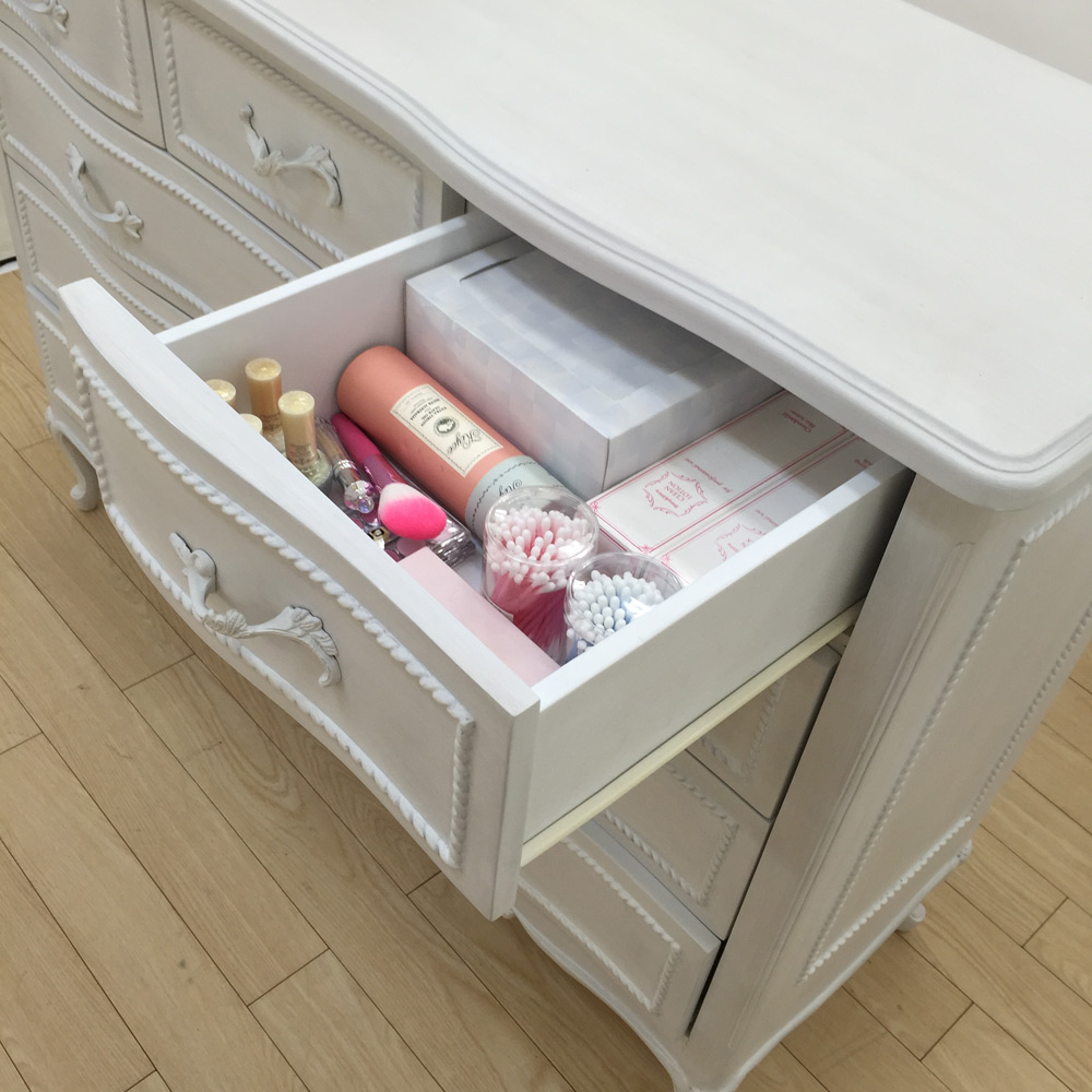コスメやリビング雑貨、小物類の収納に便利な小引出しが付いています。