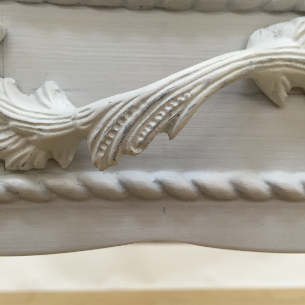 ◆落ち着きのあるグレーがかったホワイト色で、上品な美しさをたたえます。◆長年使いこまれたような味わいが出るよう、表情豊かなアンティーク加工に仕上げました。