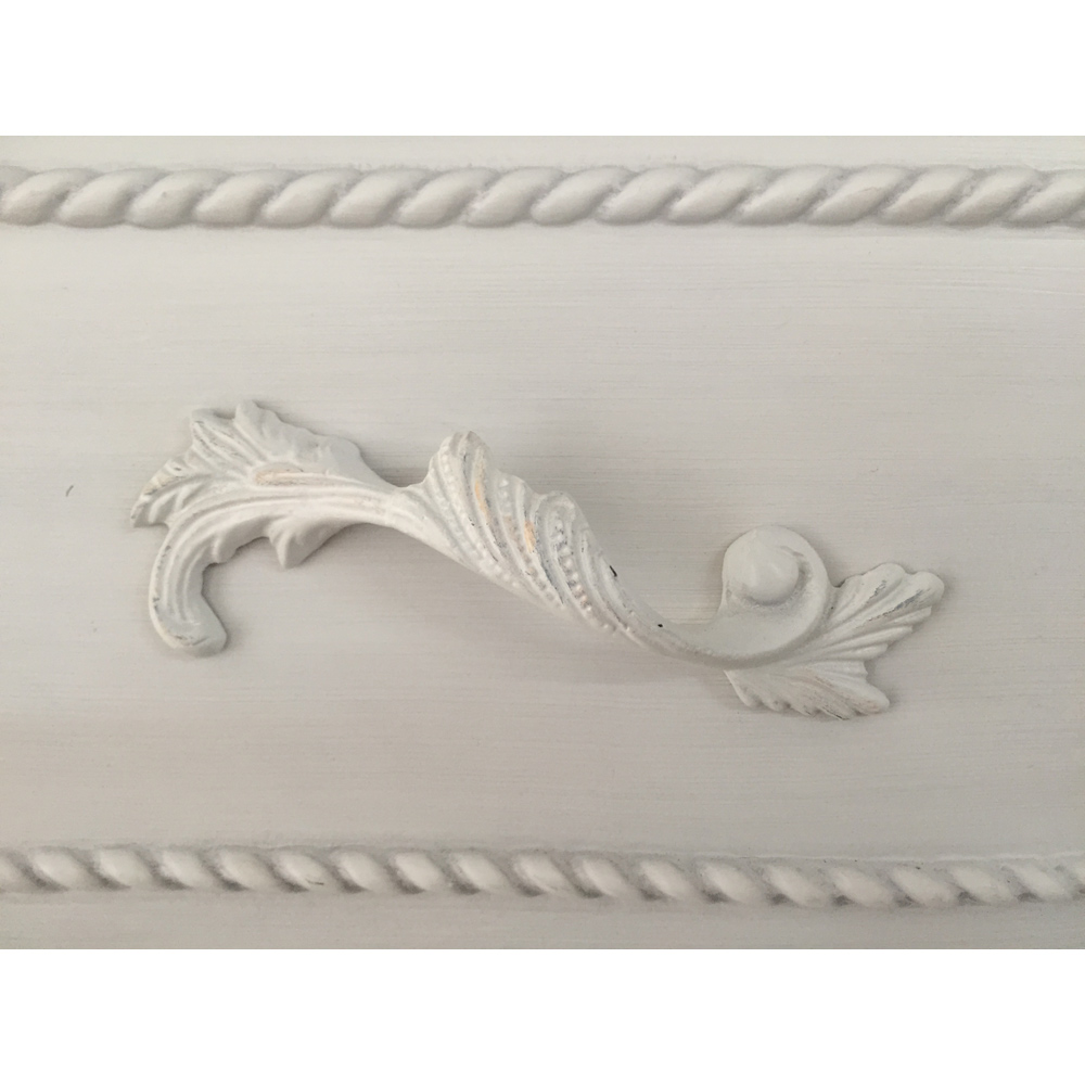 引き出しの取っ手には、流麗なデザインの装飾が施されています。