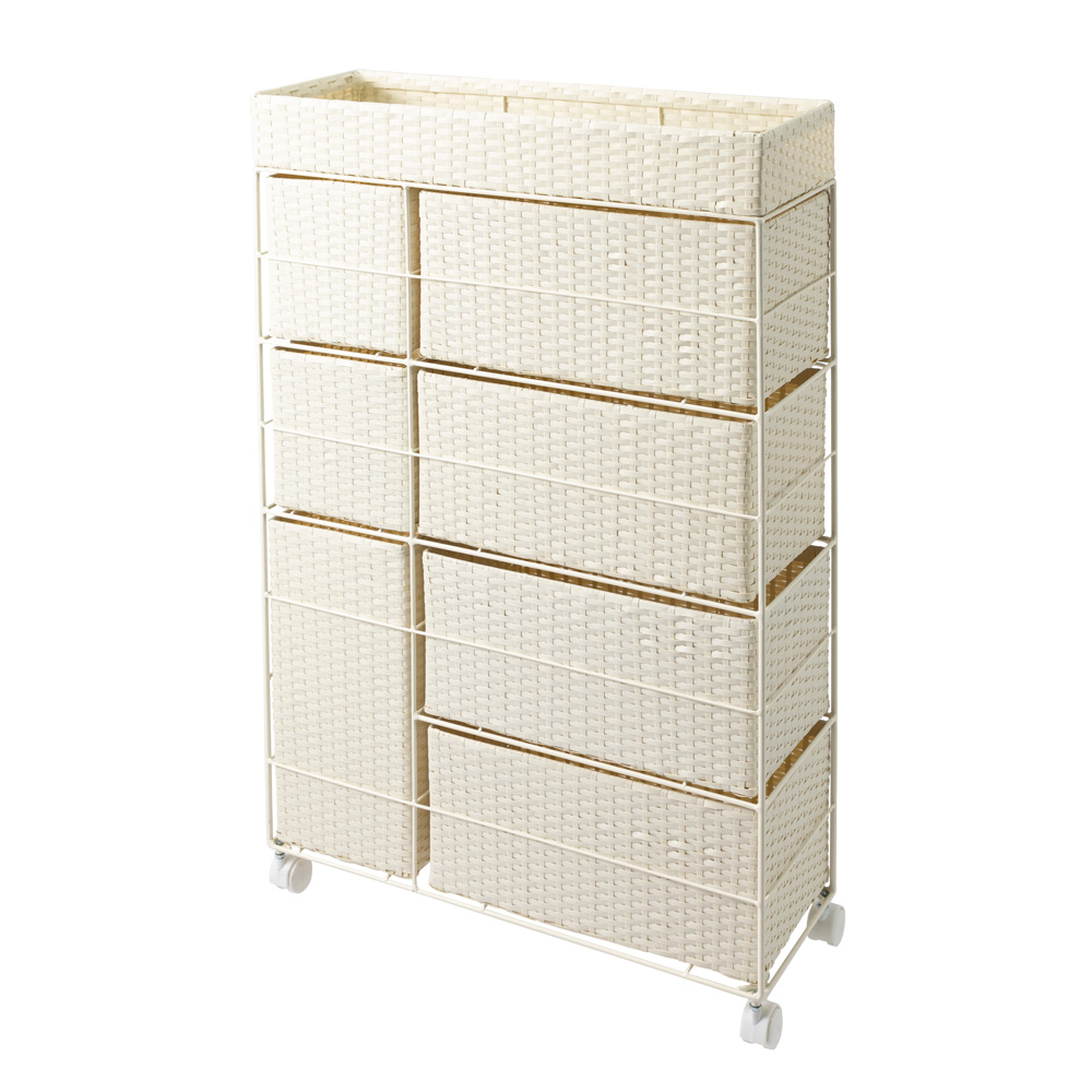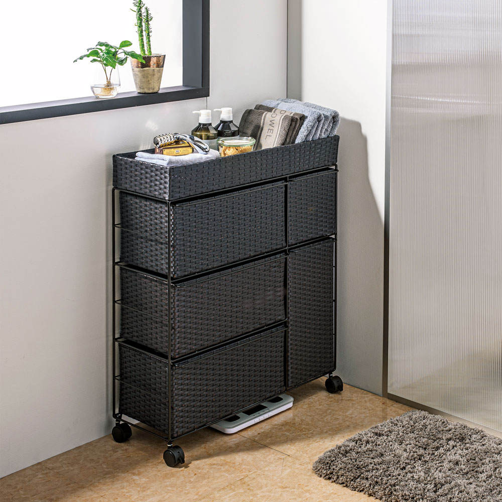 省スペースラタン調ランドリーチェスト 引き出し3杯タイプ 幅49cm奥行28cm高さ80cm 洗面所収納 隙間収納 トイレ 洗面所 ランドリー収納 631219