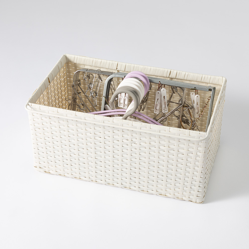 ●天然のラタンを編んだような自然なルックスなのに、洗面所にも安心して置ける樹脂製です。●水や汚れがすぐに拭き取れて、お手入れが簡単。