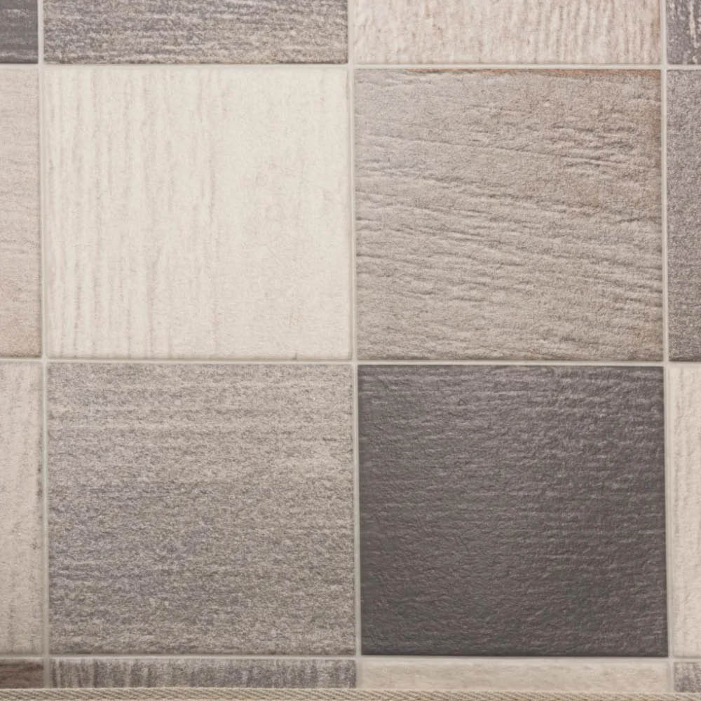 • (イ)タイルグレージュ(素材アップ)様々な天然石の風合いを再現し、格子状にデザインした石目調タイル柄。