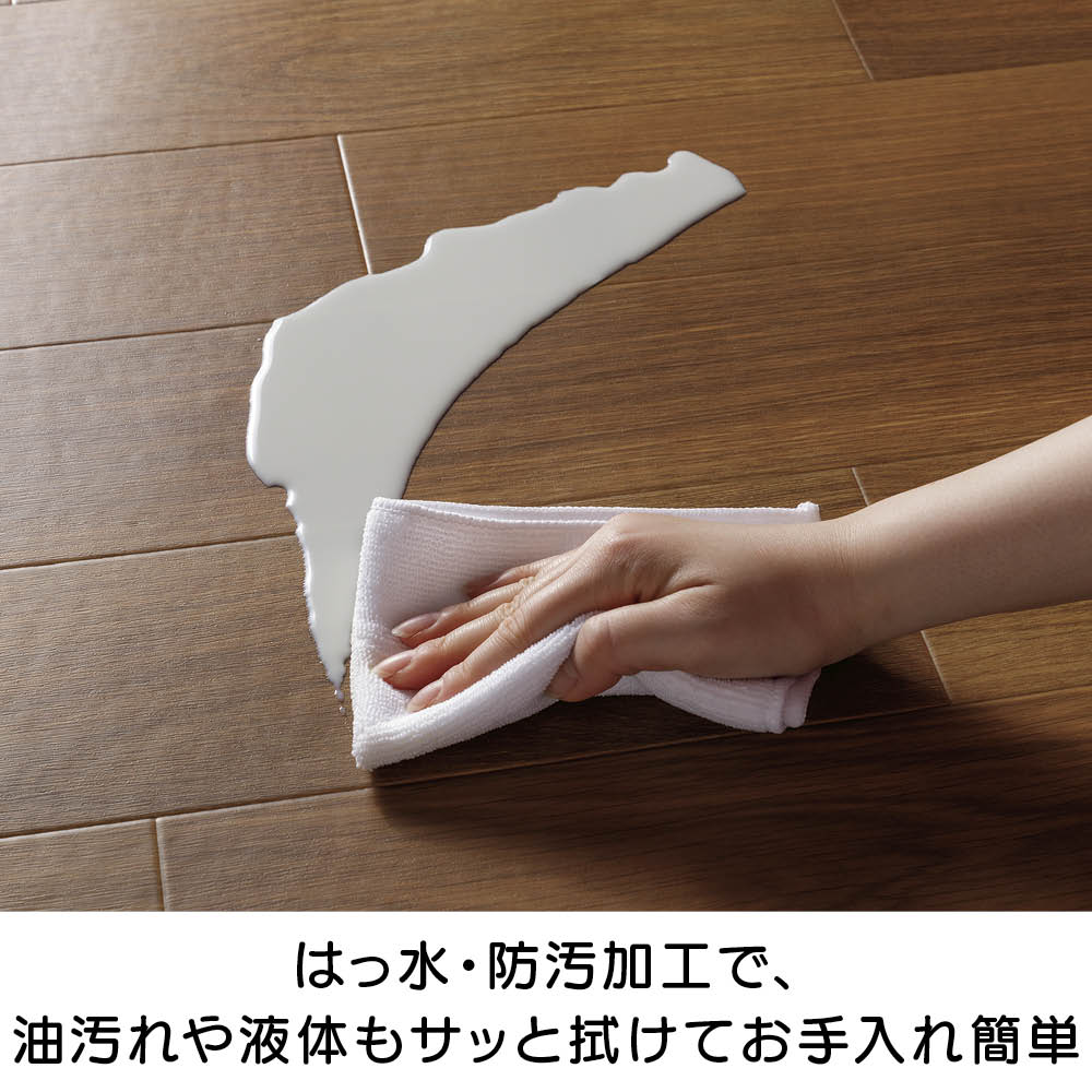 表面が塩化ビニルなので、汚れが染み込まず、キッチンの水ハネや油汚れも、サッと拭くだけの簡単お手入れ。