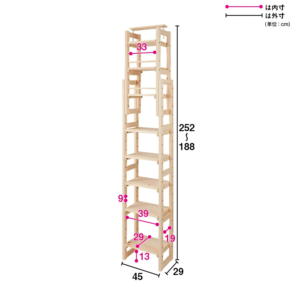 日本製東濃檜 国産頑丈突っ張りシェルフ 幅45cm奥行29cm(天井対応高さ188cm-252cm) 突っ張り収納 ラック 本棚 シェルフ 627405