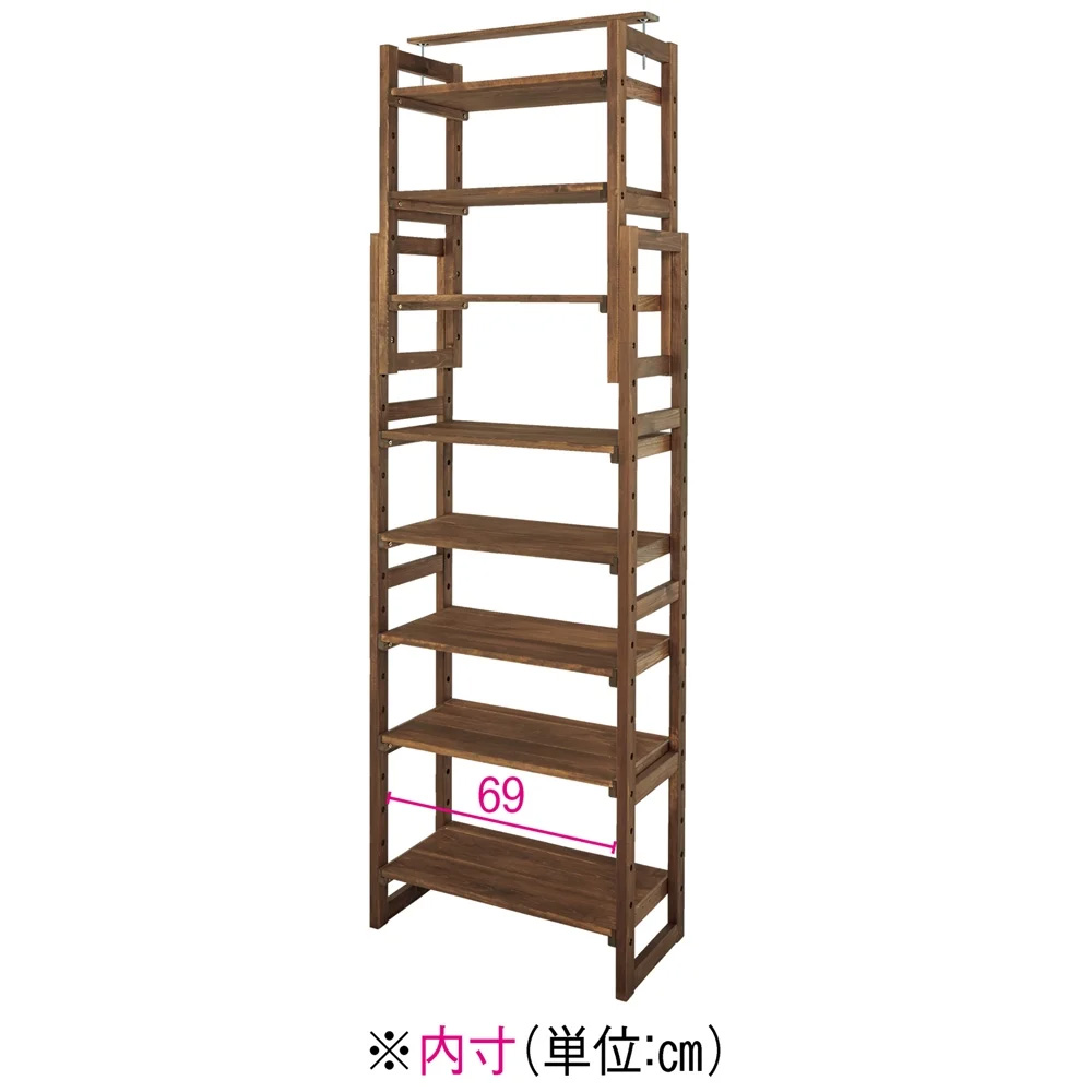 日本製東濃檜 大量収納が叶う国産頑丈突っ張りシェルフ 幅75cm奥行38cm(天井対応高さ188cm-252cm) 突っ張り収納 ラック 本棚 シェルフ 627410