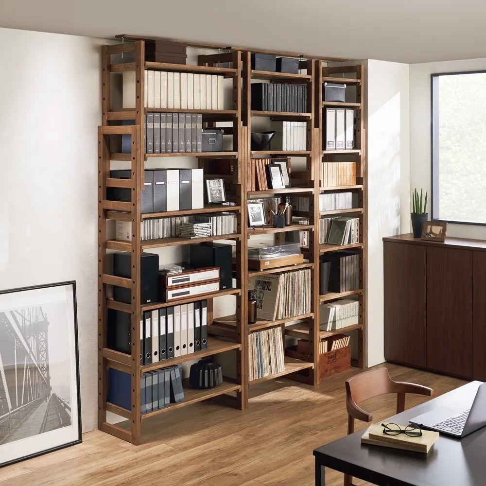 コーディネート例(イ)ダークブラウン 音響家電なども収納して、趣味部屋や作業部屋の空間を彩るのもおすすめ。 ※写真左から幅90奥行38cm、幅75奥行38cm、幅60奥行38cm ※天井高さ240cm