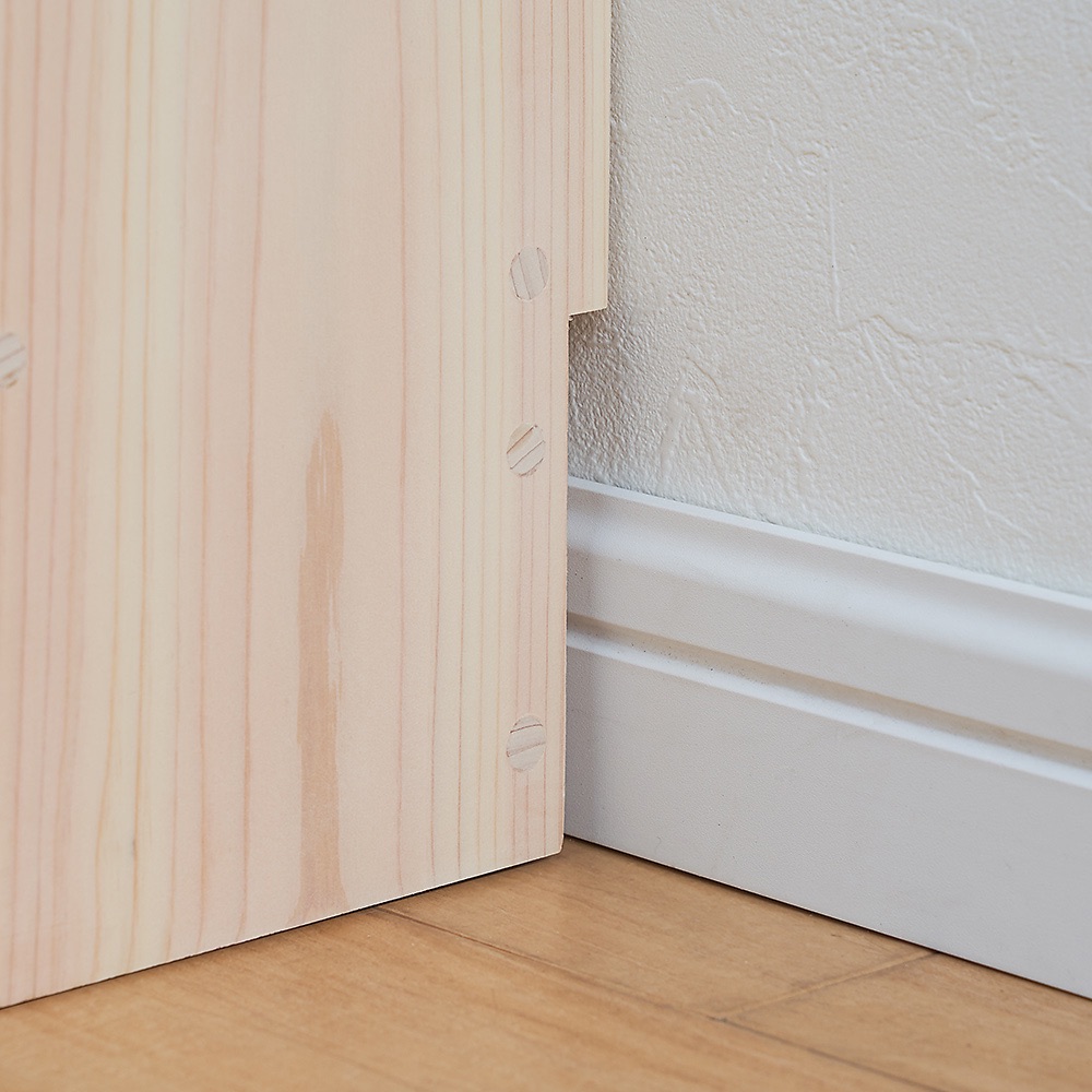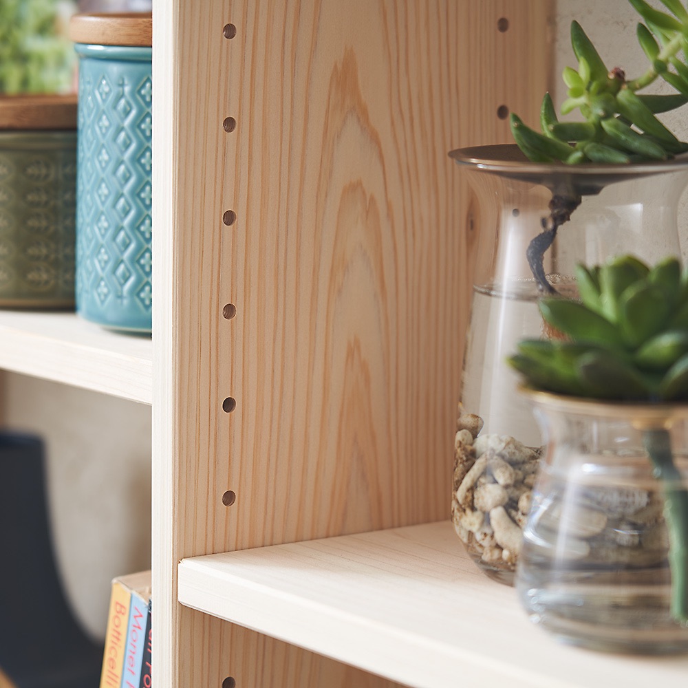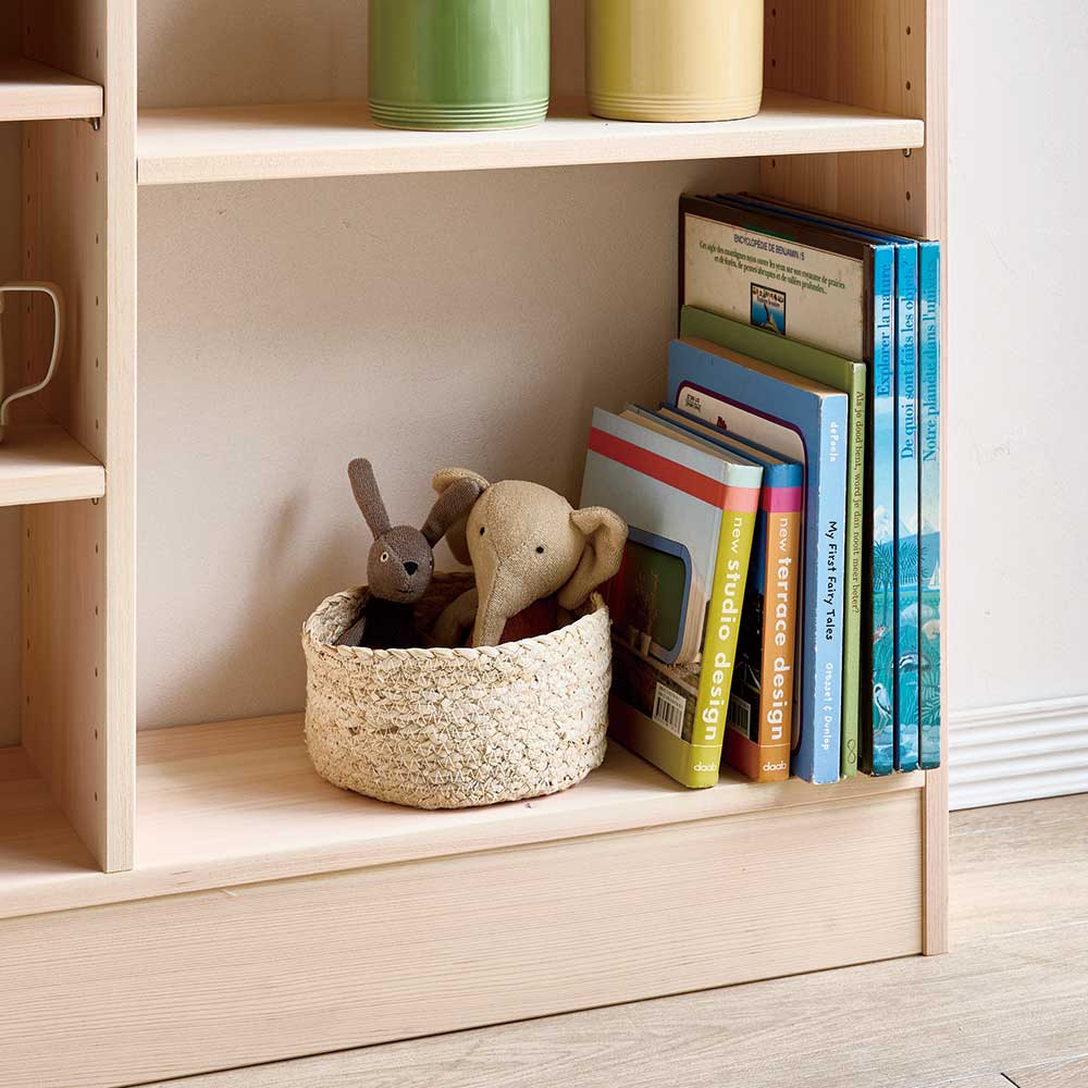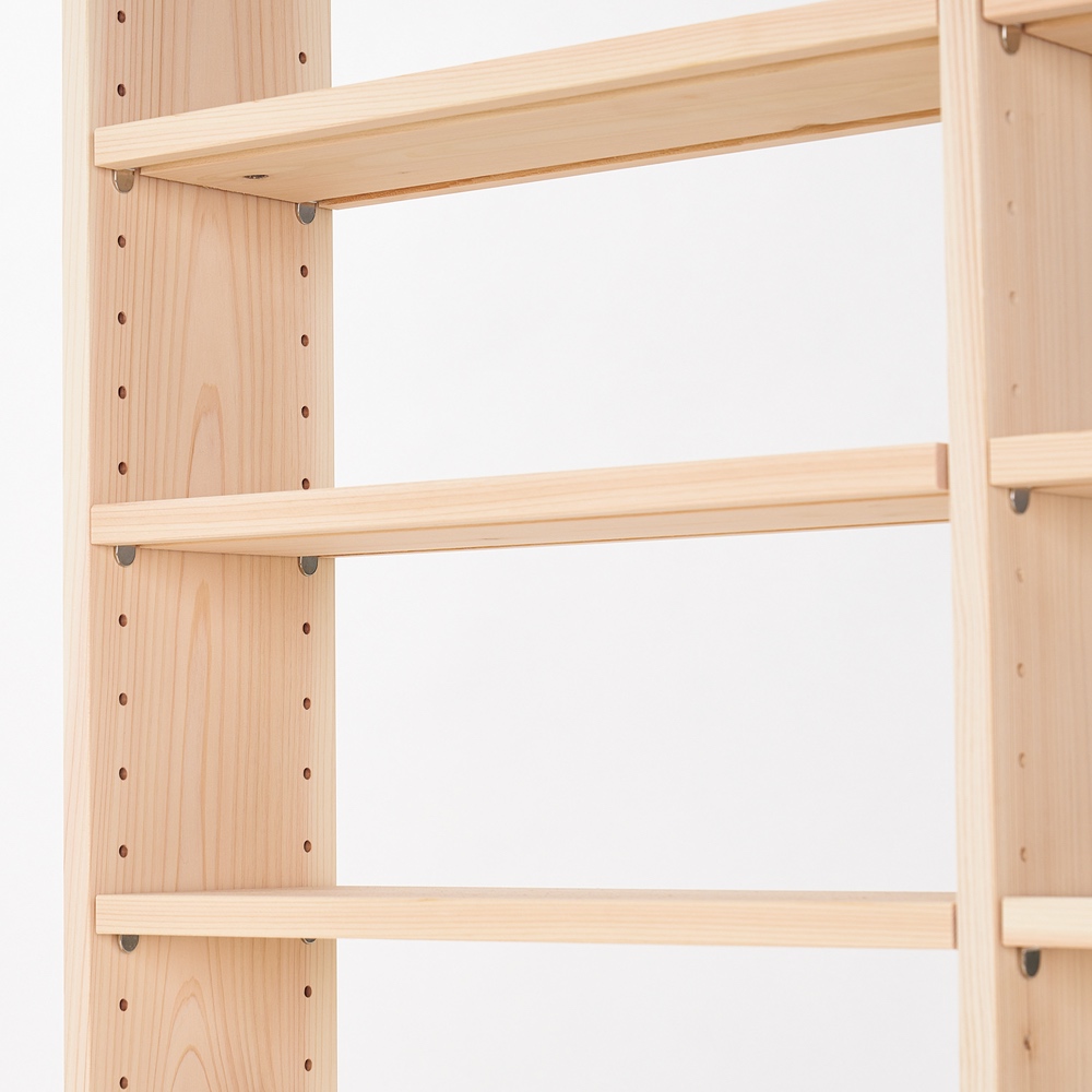 また、粘り強い木材としても有名で、棚板耐荷重約30kgを実現。豊かな風合いが魅力の無垢材は北欧家具・北欧インテリアにも優しく調和します。