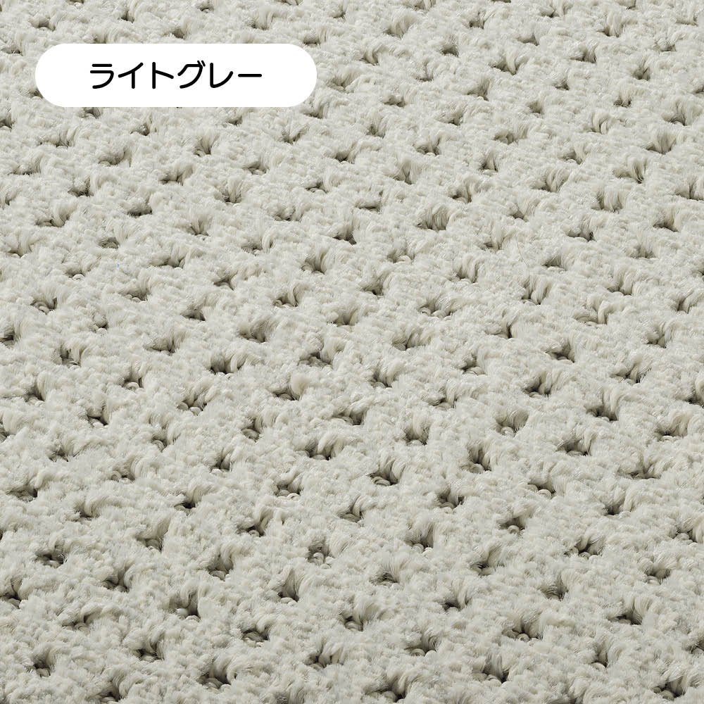 明るくやさしいトーンのライトグレーは、ナチュラルな木目やモダンなインテリアとも好相性。不快なニオイの元となる4大悪臭成分を分解・消臭するほか、抗菌加工により菌の増殖も抑制。洗濯しても効果が続きます。(写真は(ア)ライトグレー 160×230cm)