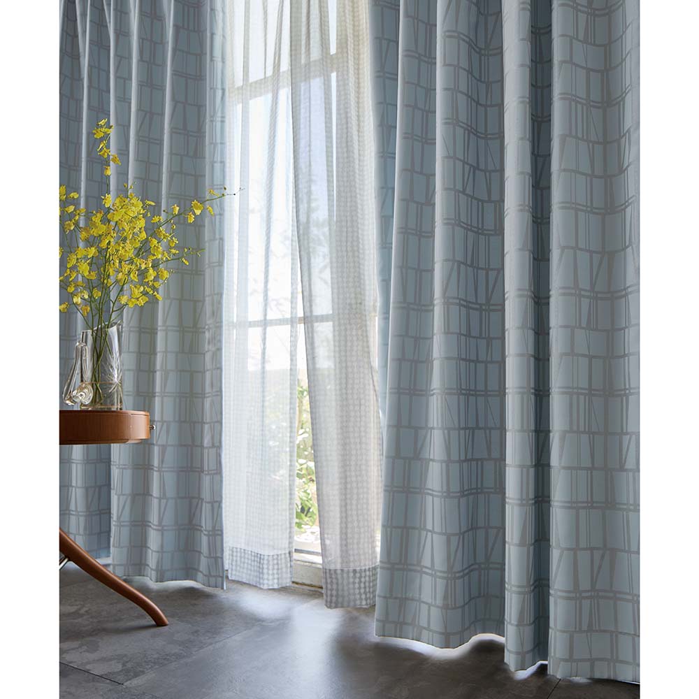 (イ)ブルー(写真はパンプーラレースカーテン (ウ) グレー との同色系コーディネート)※お届けは厚地カーテンのみになります。