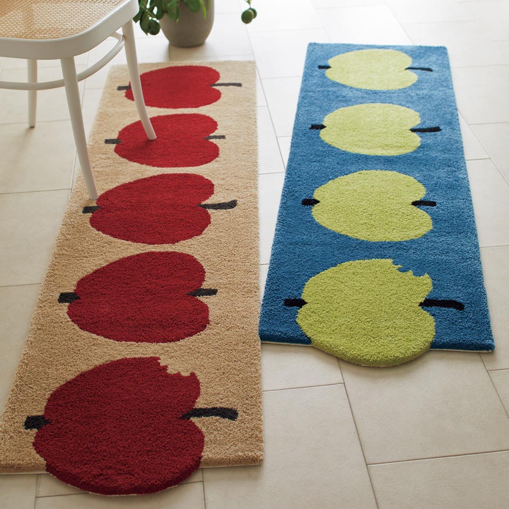 大人の可愛らしさが人気のオンップ。リンゴが少しはみ出たデザインが楽しく、丈夫で扱いやすいアクリル100%のフック織マットは、暮らしのアクセントになること間違いなし。愛らしいカラーはディノス限定色。厚さ約17mmのしっかりとした踏み心地のマットです。