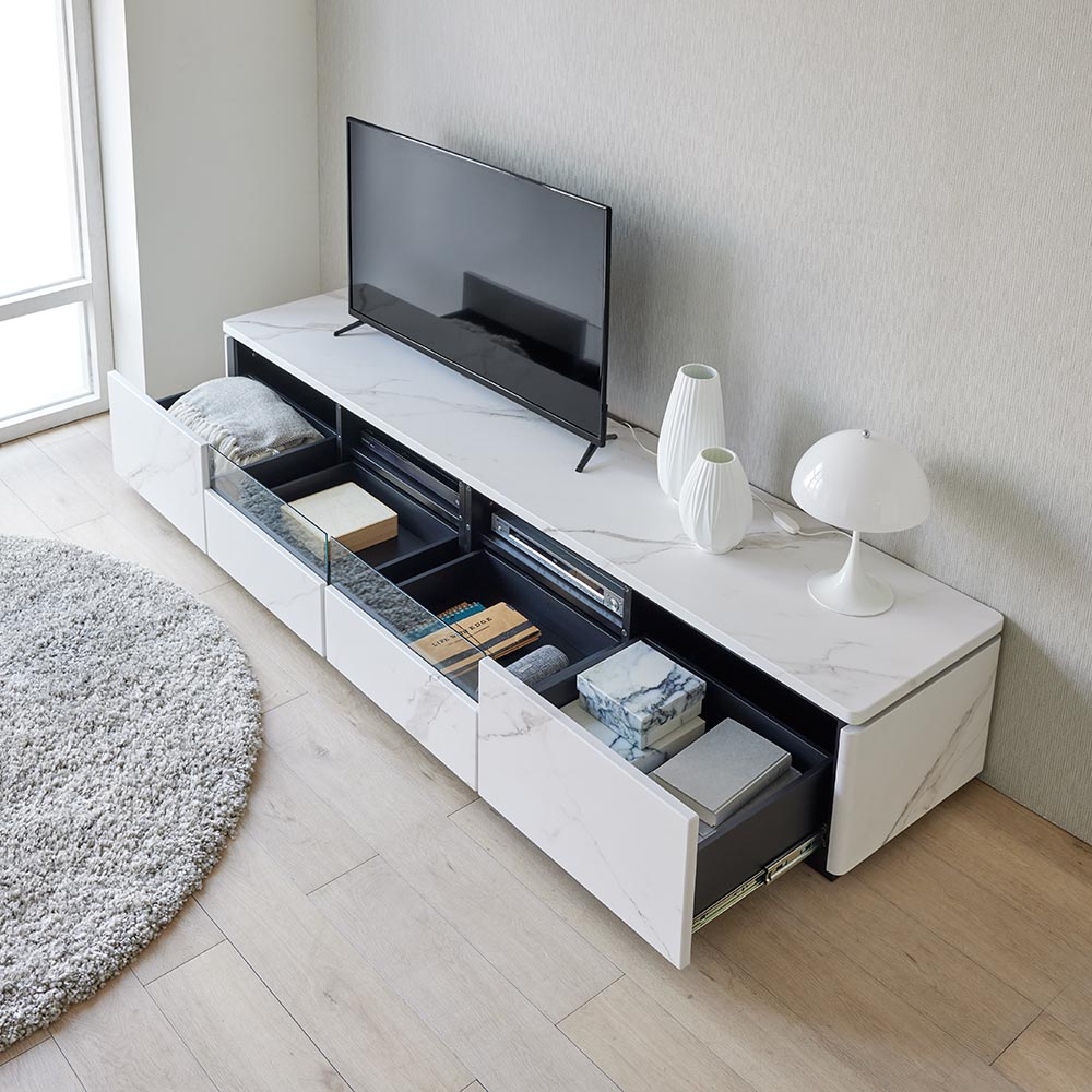 ■幅180cmなら70型まで、幅210cm・240cmなら80型までと大型テレビサイズに対応しています。