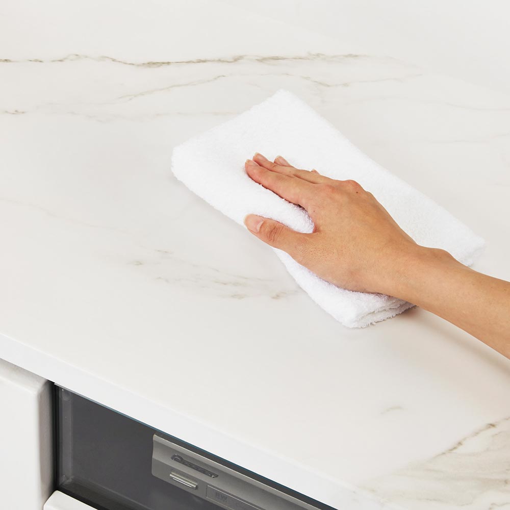 前面・天板・側面にはキズや汚れに強い素材を採用。サッと拭くだけでお手入れ簡単です。