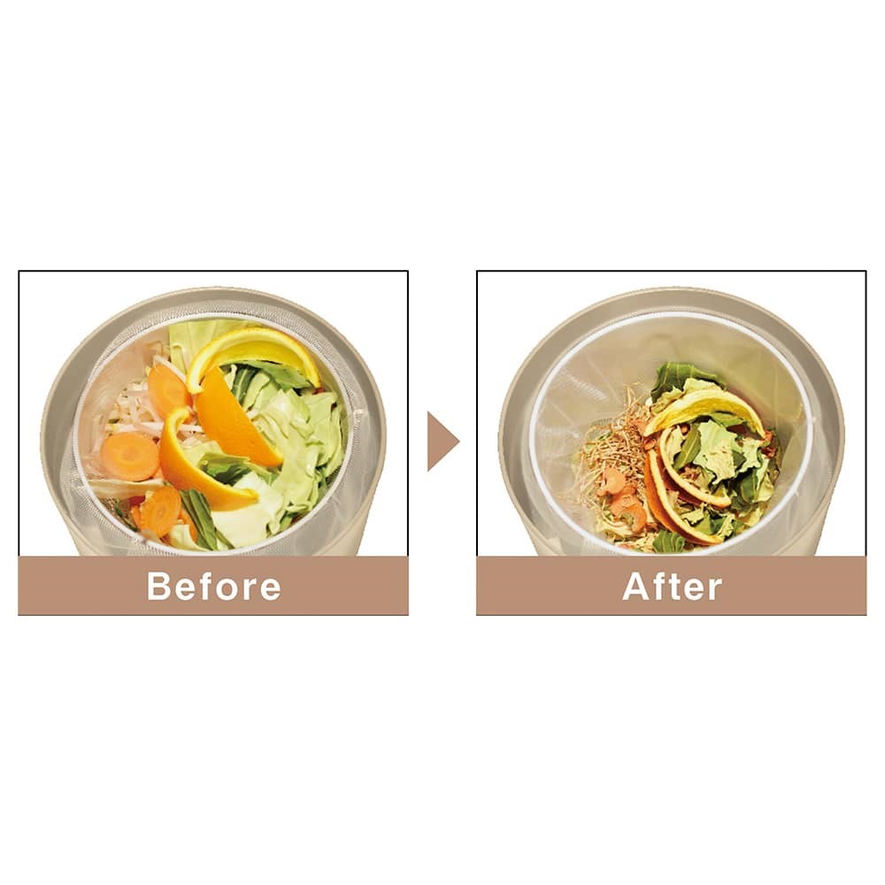 生ごみを乾燥させることでニオイを防ぐだけでなく、さらに活性炭の力でもニオイを軽減。取り替えのできる活性炭の脱臭フィルターカートリッジで、常にパワフルな消臭力をキープします。夏場もいやなニオイが漂いにくいから、キッチンに立つ気分も上がります。乾燥後の生ごみは、ナチュラルで栄養たっぷりの肥料にもなります。